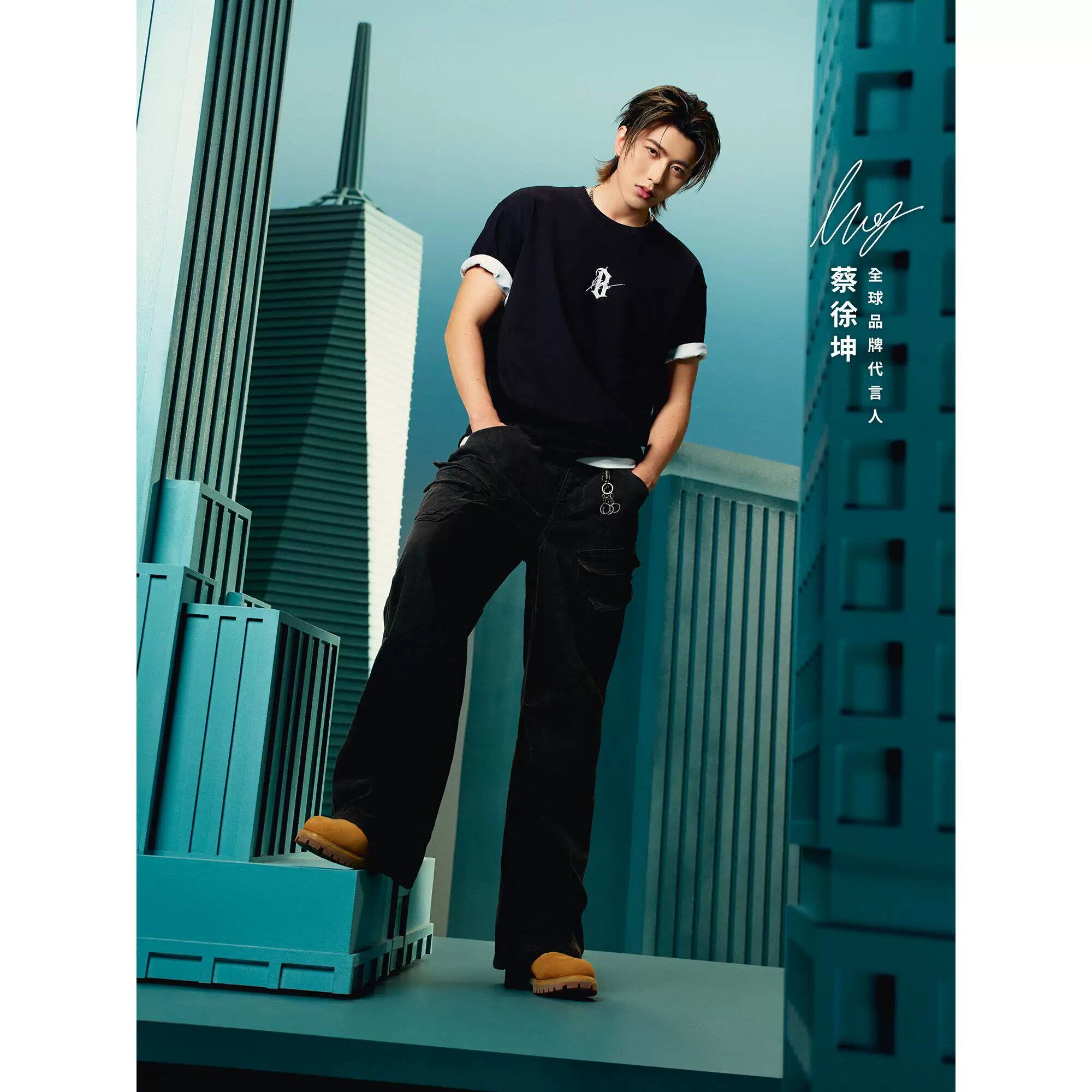 淘宝【蔡徐坤同款】BONELESS哥特B签字印花短袖T恤宽松情侣潮牌上衣