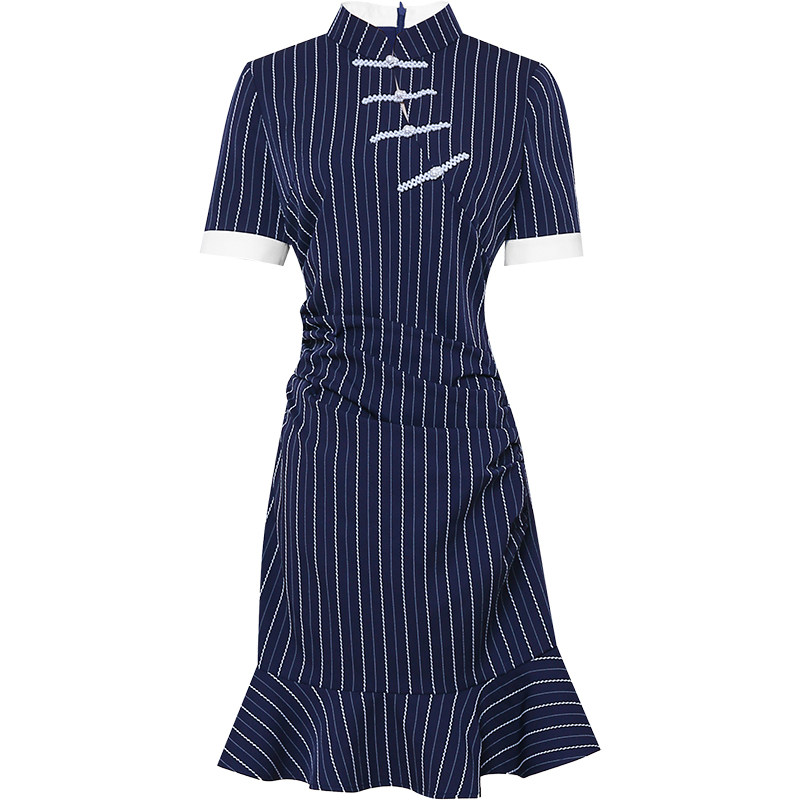 2026夏季新款国潮气质复古旗袍小立领设计感修身荷叶边短款连衣裙