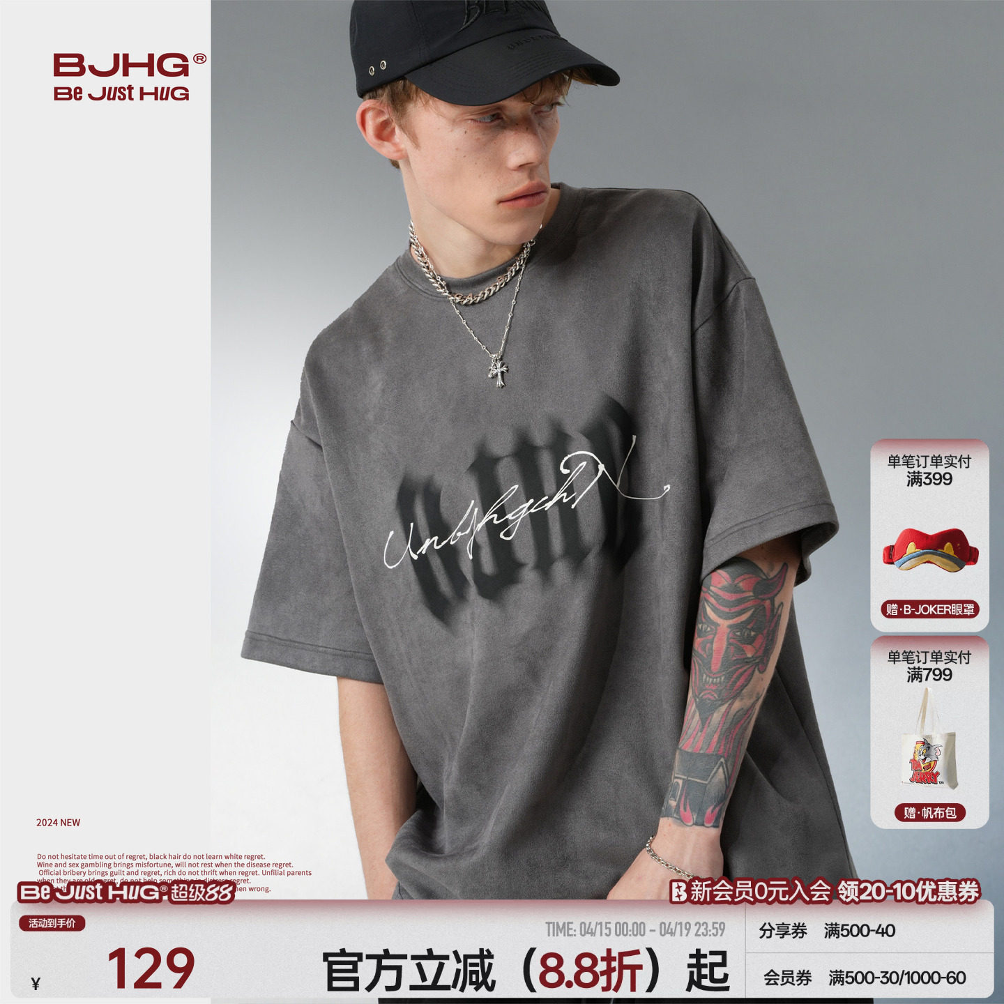 --------------------- BJHG不计后果美式复古虚幻t恤短袖男款夏季潮牌休闲宽松半袖T恤女 --------------------- --------------------- 【原价】189元 【券后价】119元