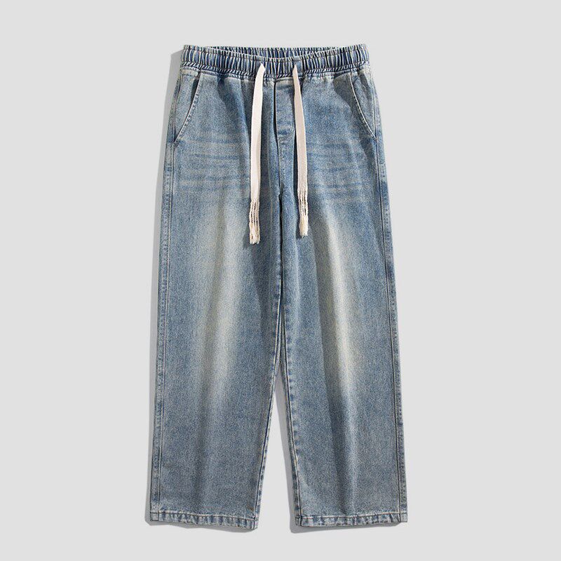 牛仔裤男春季直筒裤复古休闲男生裤子2024美式高街男款垂感九分裤