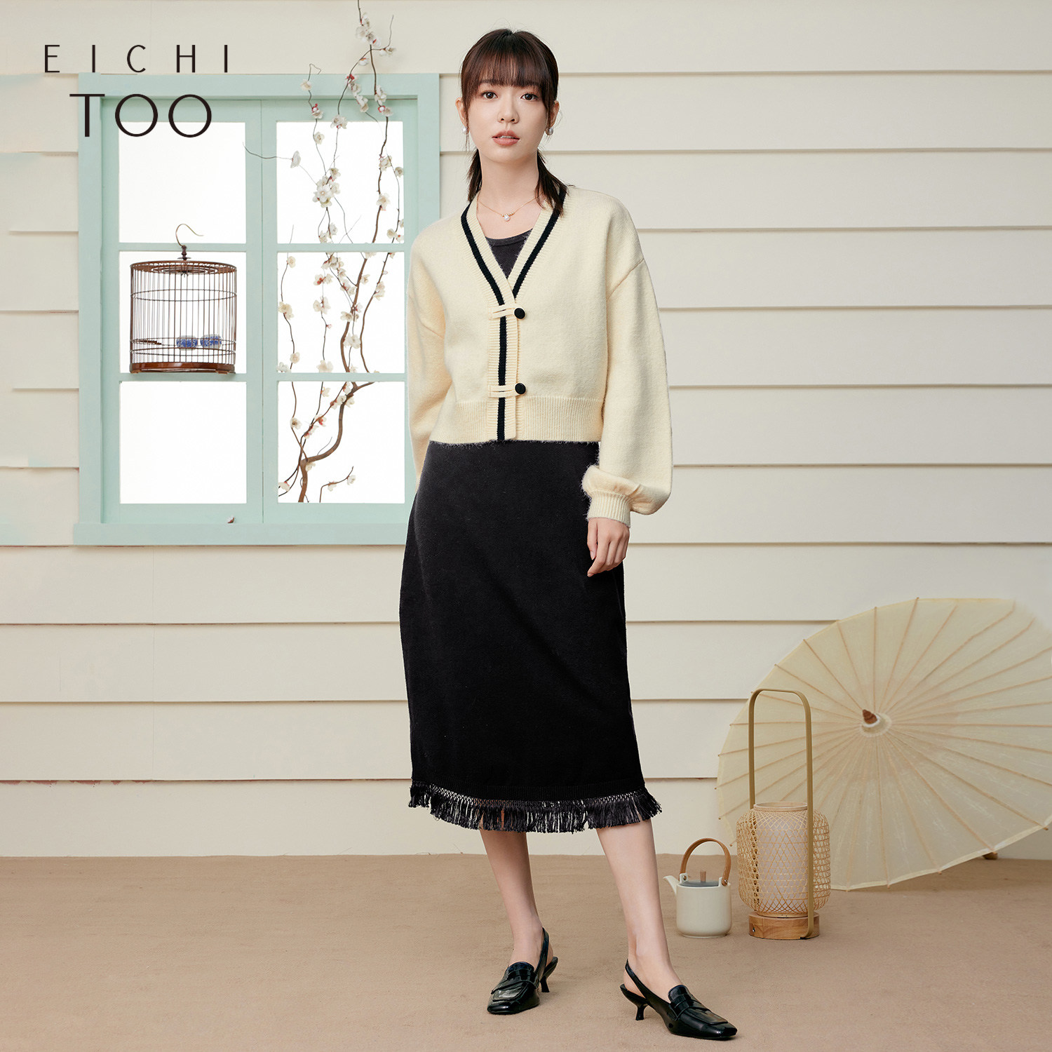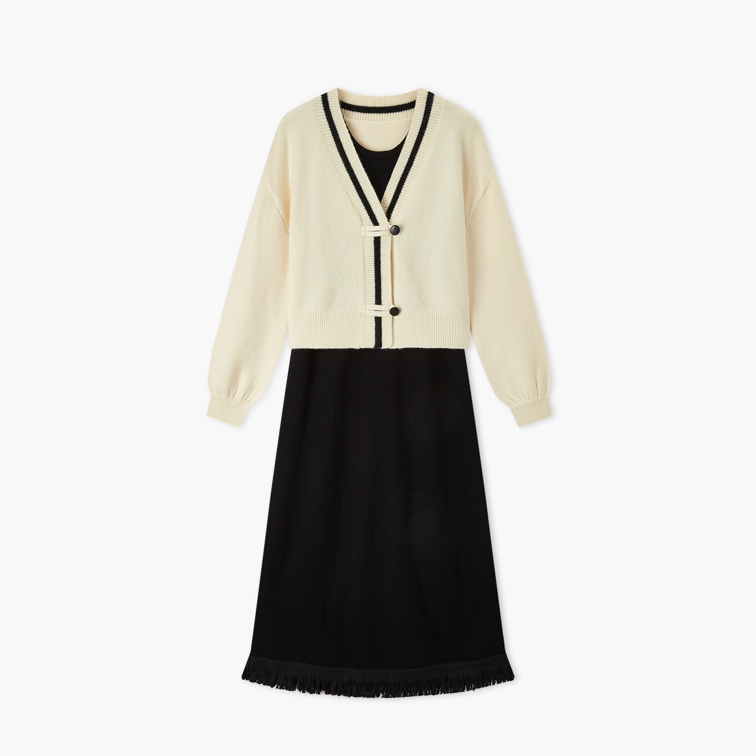 爱居兔春季国潮风复古时尚两件式针织衫连衣裙