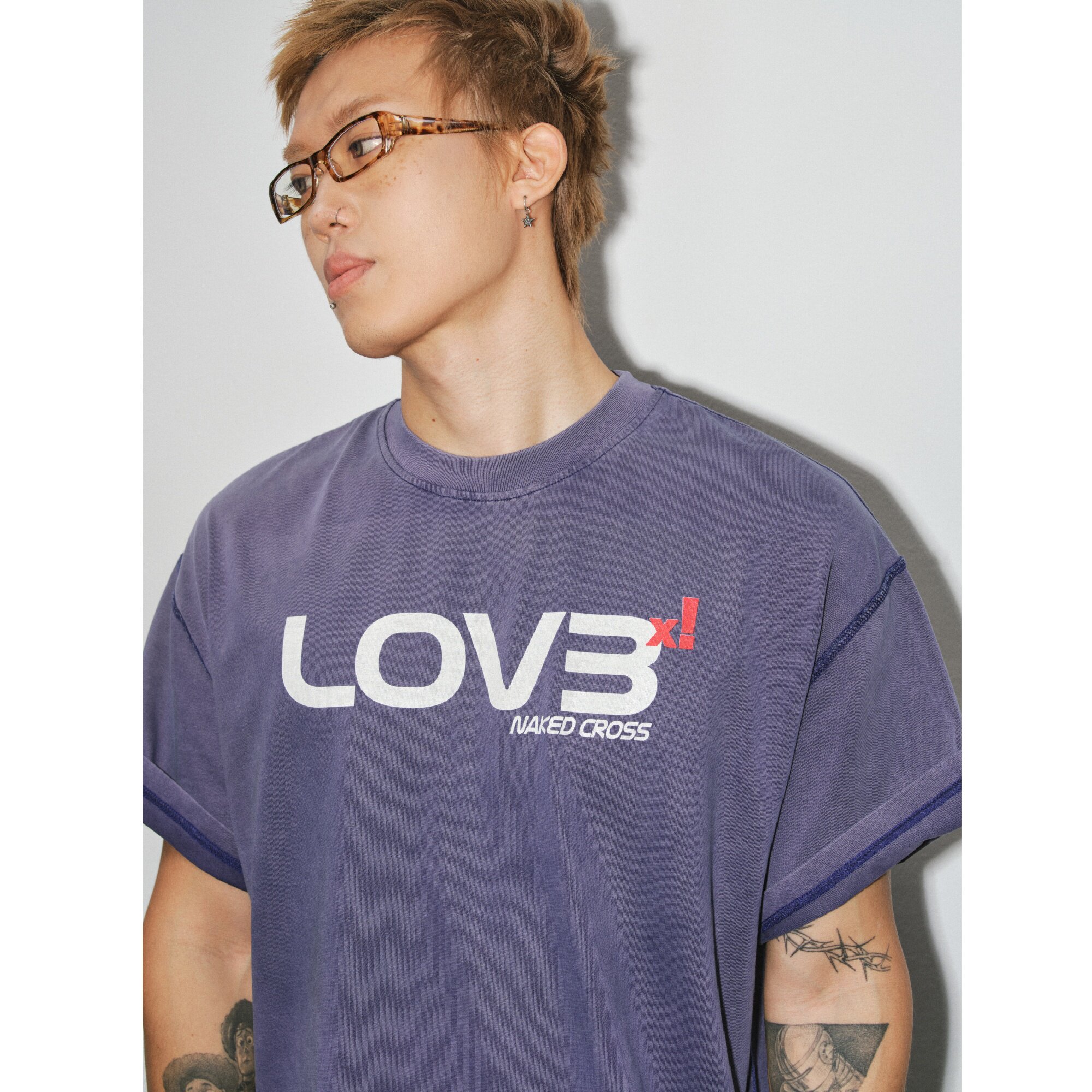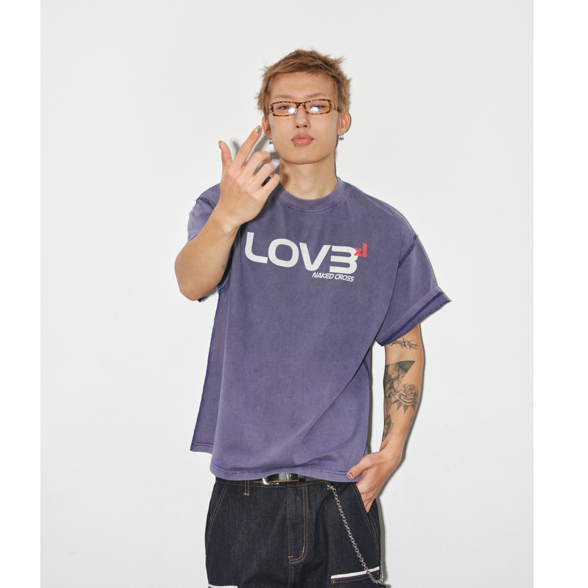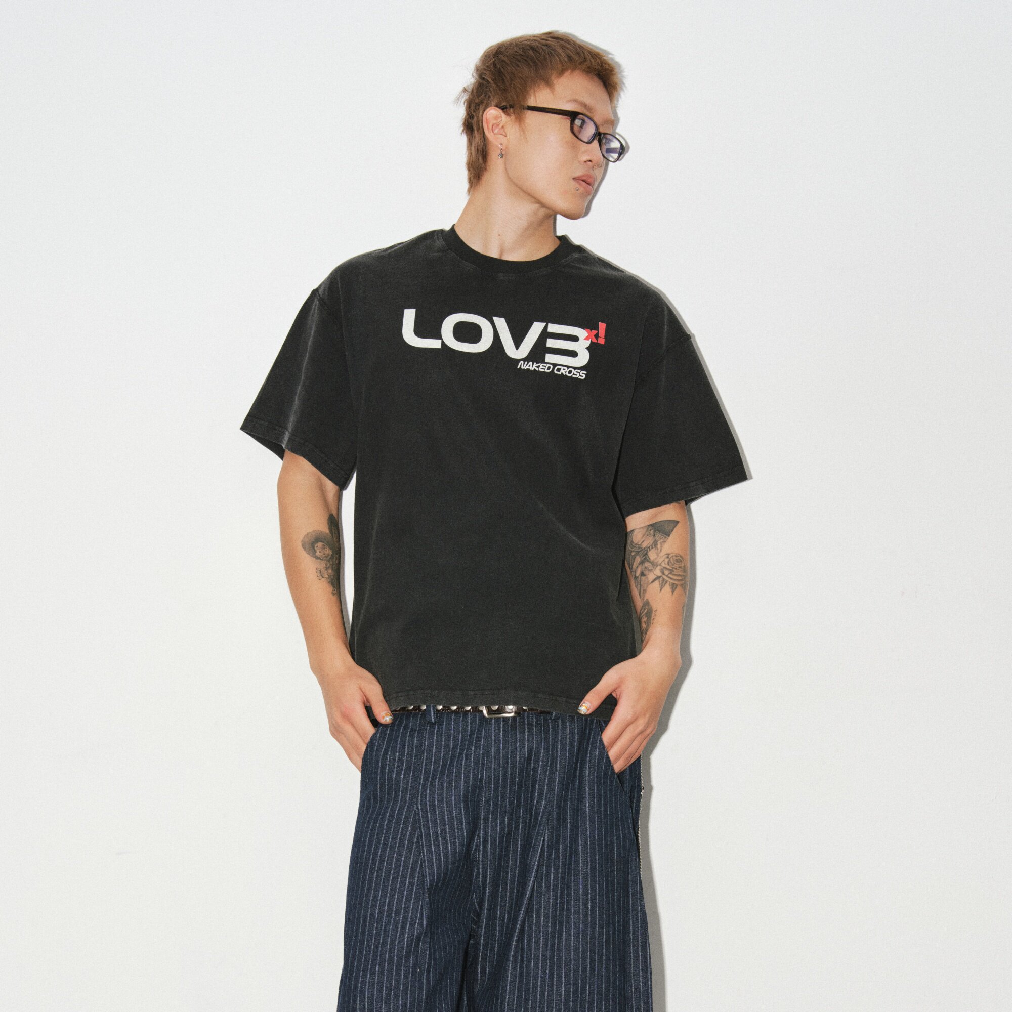 NOVACAM 新款美式复古vintage字母LOGO印花水洗黑宽松短袖T恤