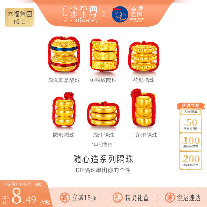 --------------------- 金至尊随心造黄金隔珠硬足金隔片DIY锤纹爆闪配珠配件小克重散珠 【原售价】560元 【现售价】420元 【推荐理由】