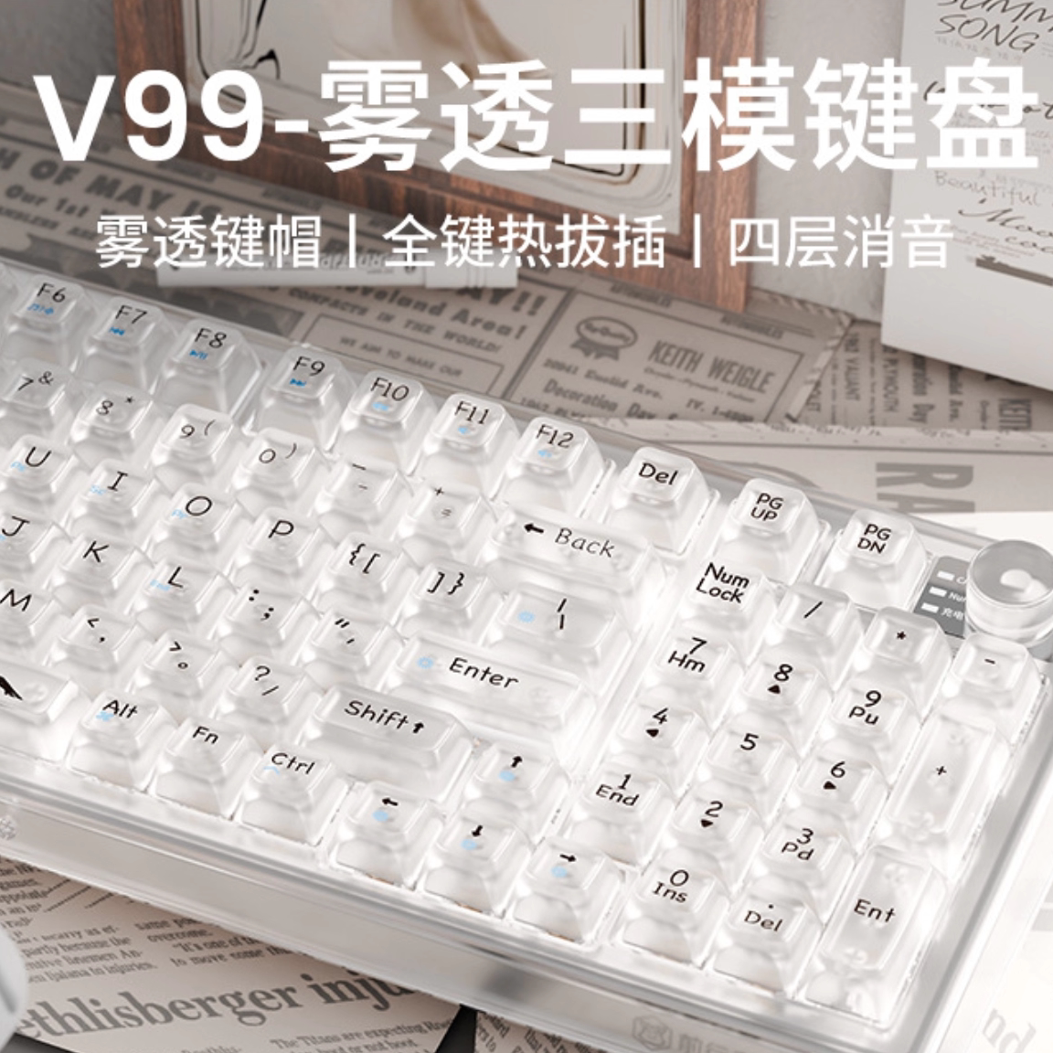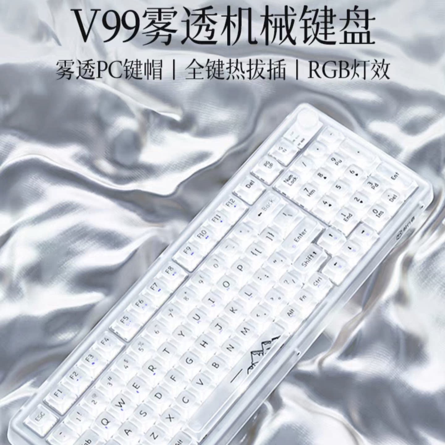 --------------------- 前行者v99三模机械键盘 四层消音 全键热插可拨白色雾透水晶轴RGB --------------------- --------------------- 【原价】435元 【券后价】396元