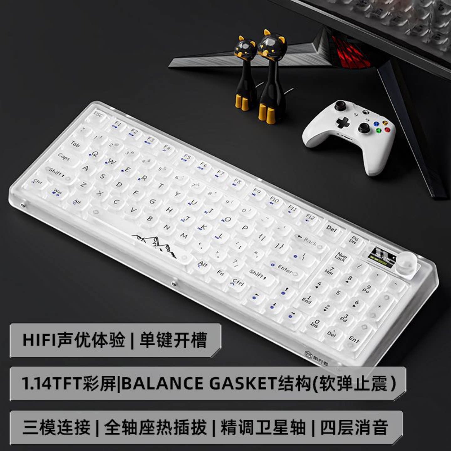 前行者v99三模机械键盘 四层消音 全键热插可拨白色雾透水晶轴RGB