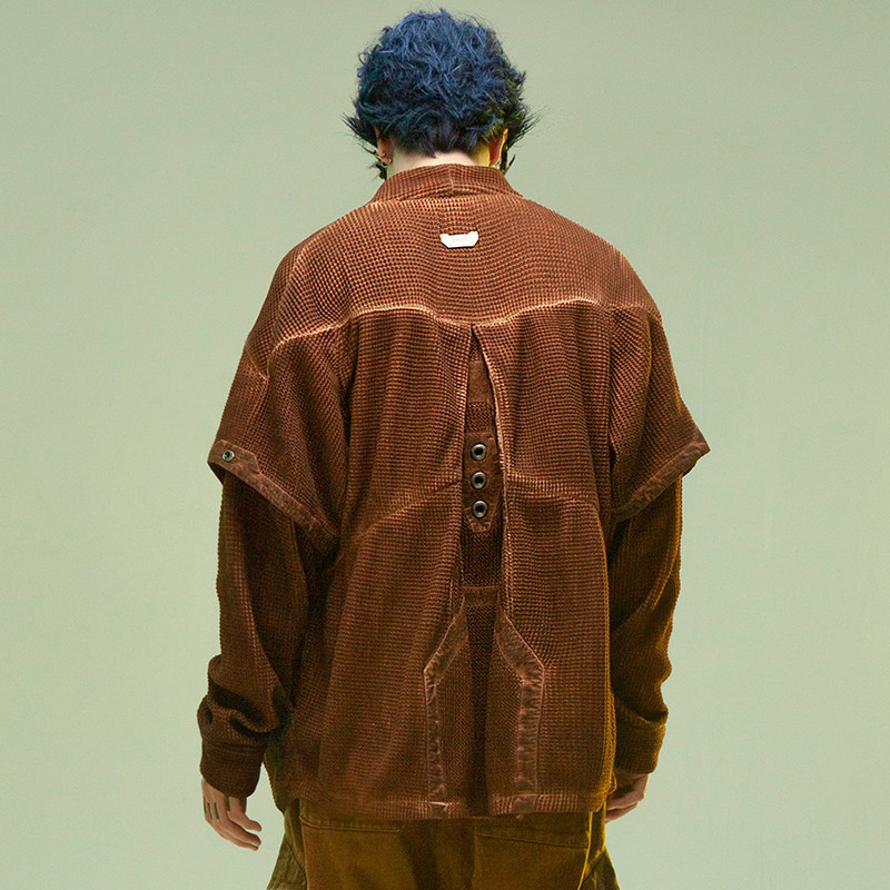不作恶「矩阵生还者」中国风赛博朋克骨白染色水洗汉服开衫