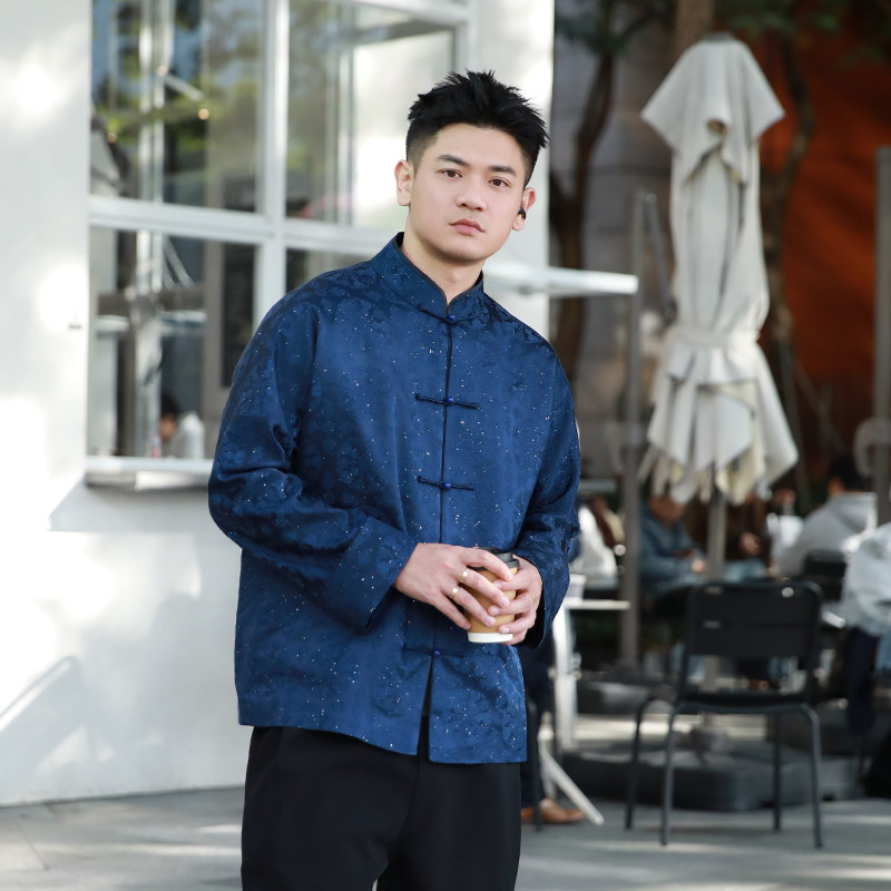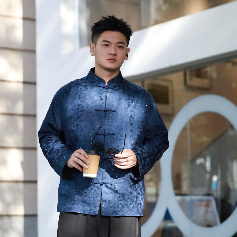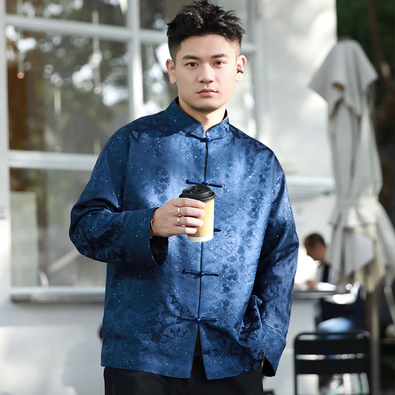 宝葫三重门2026正流行中式国风男外套唐装宋锦真丝国潮高级感年轻