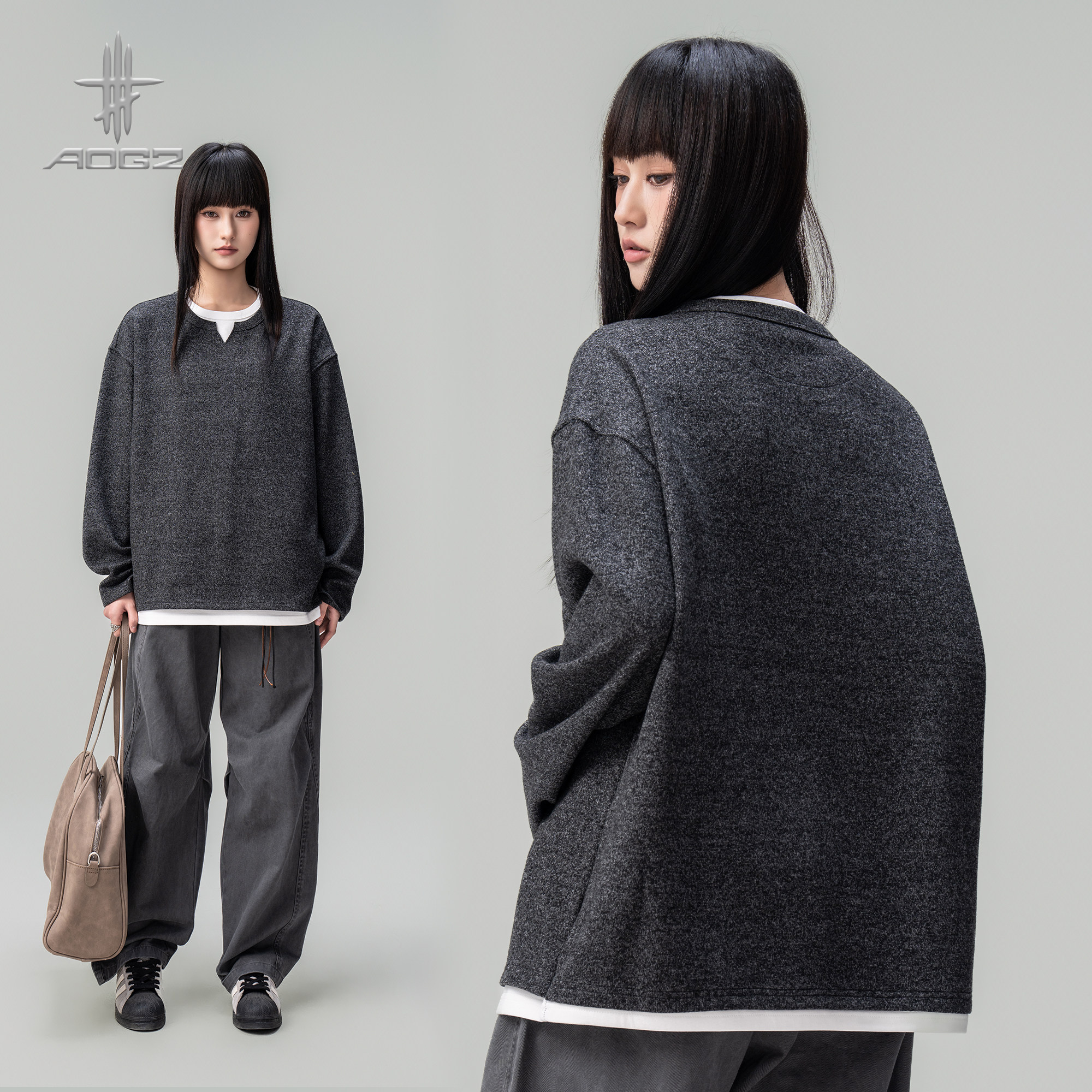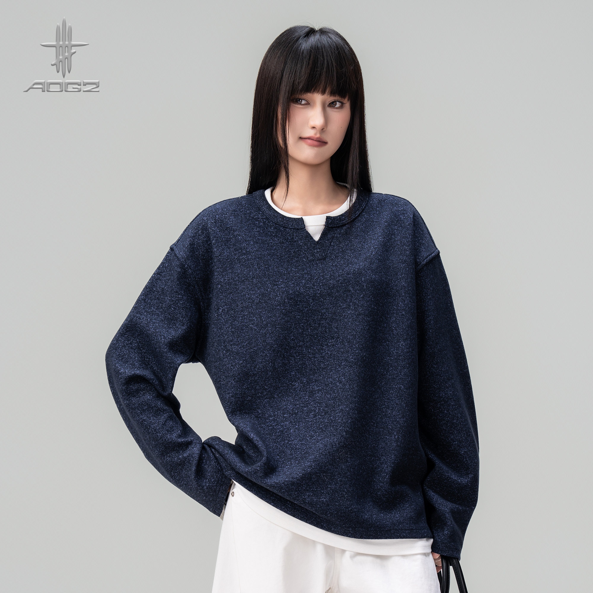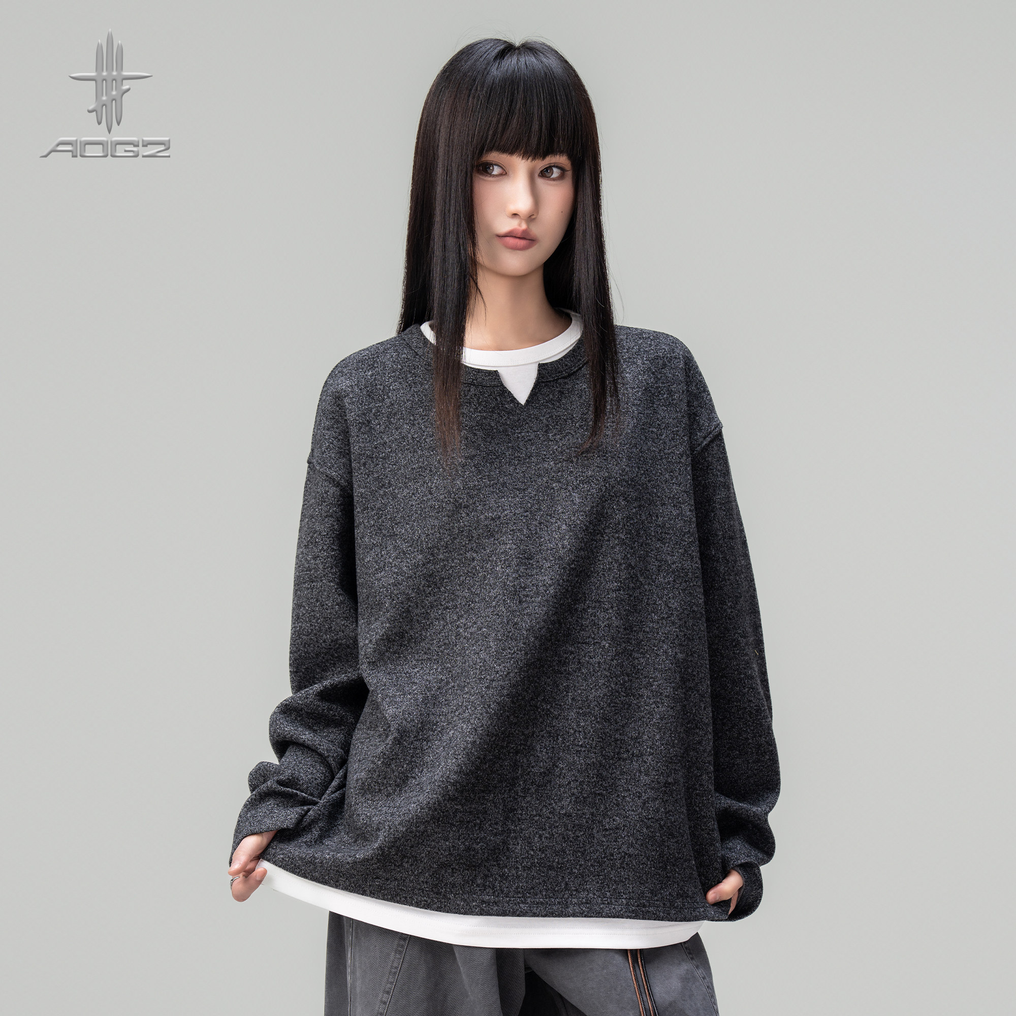 --------------------- AOGZ设计感复古小V领假两件套头卫衣男女生春季新款长袖上衣T恤潮 【原售价】239元 【现售价】179元 【推荐理由】