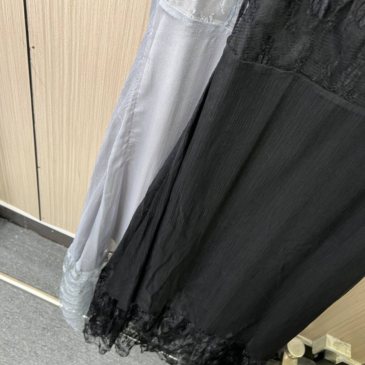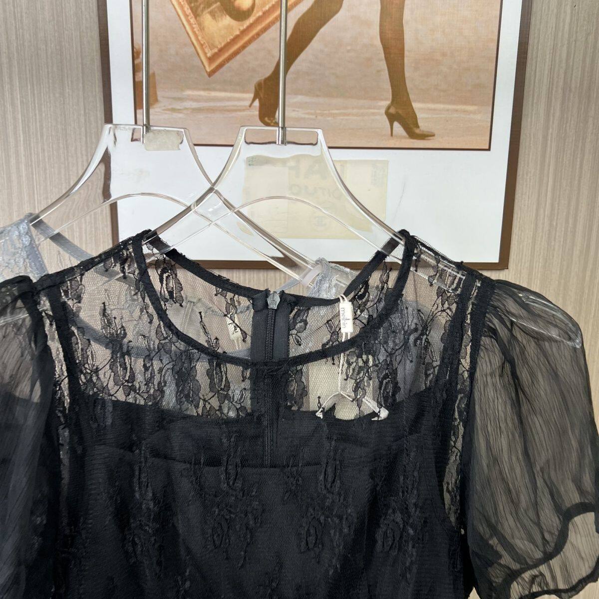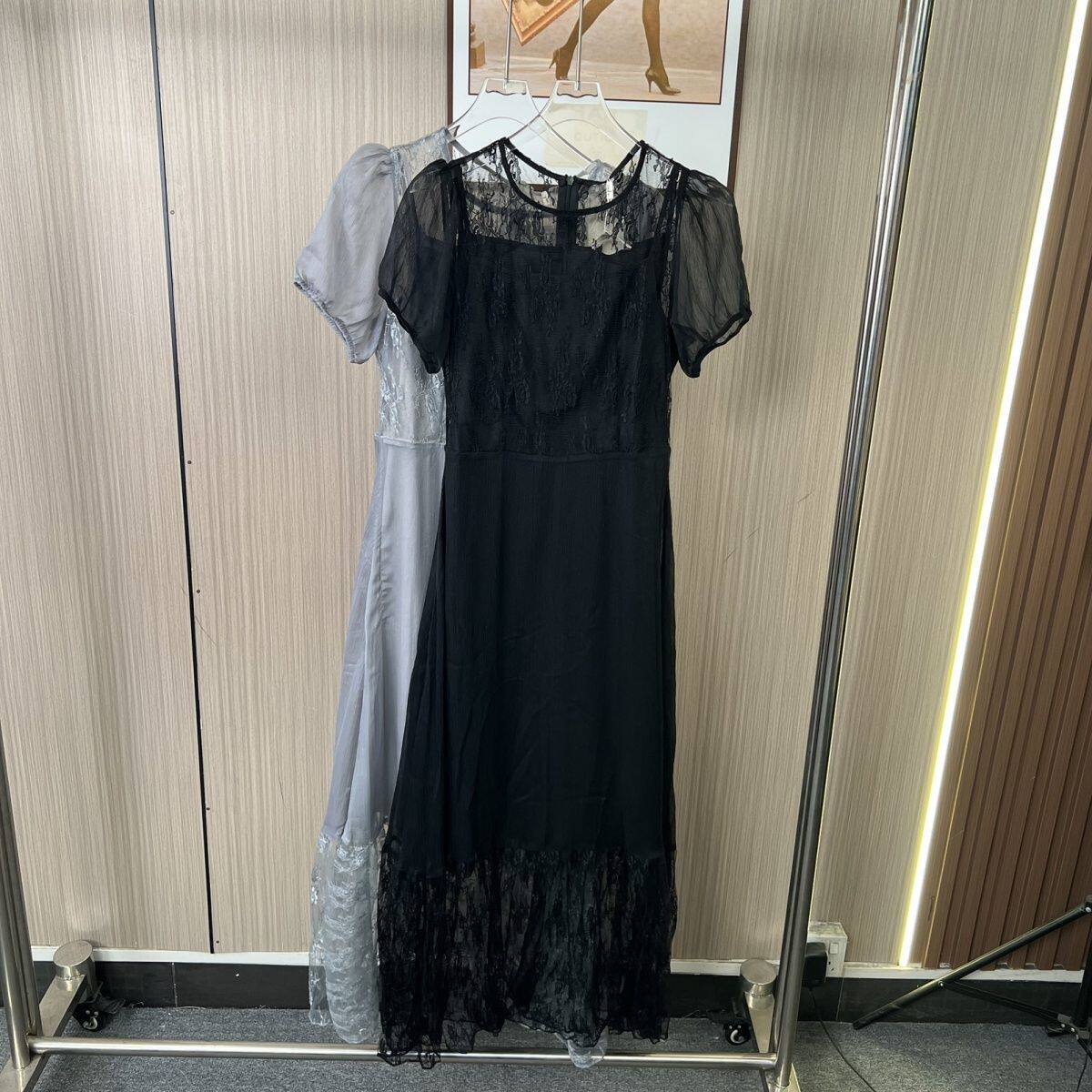 1133撤柜ft网纱蕾丝拼接新款夏季收腰法式气质连衣裙黑色显瘦裙子