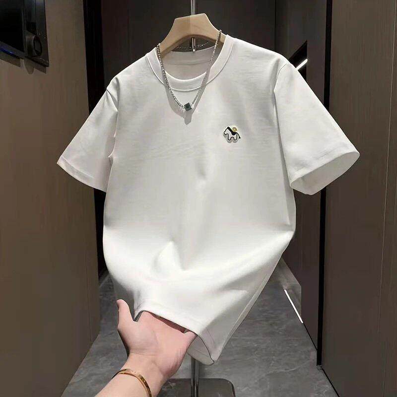 MAROLIO~国潮新风范!潮牌宽松纯棉运动短袖男简约印花百搭打底衫