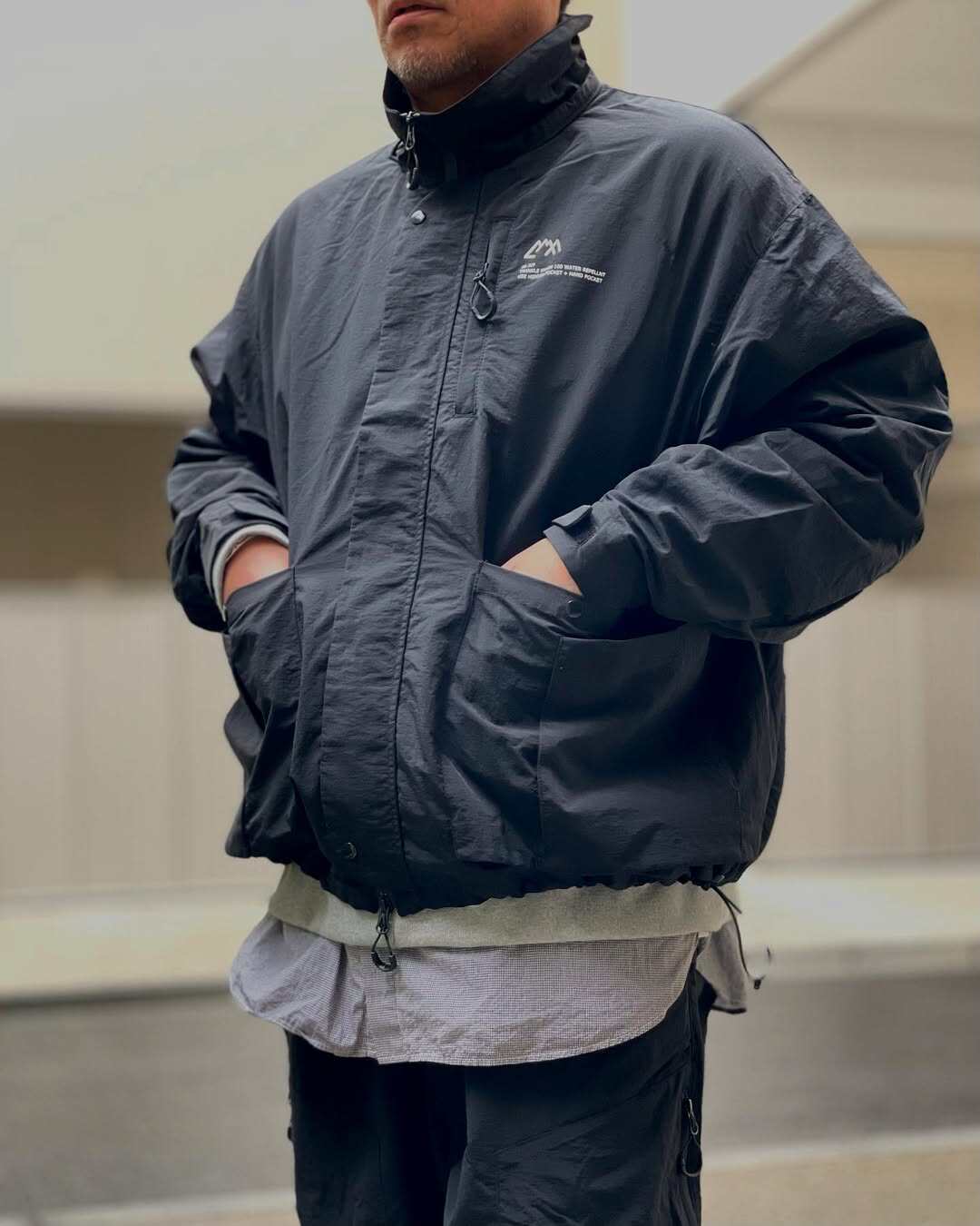 现货CMF PB JACKET 日系户外防撕裂尼龙多短款阔型立领口袋夹克