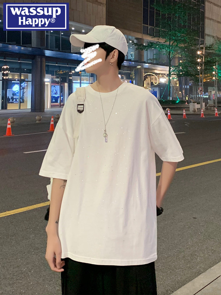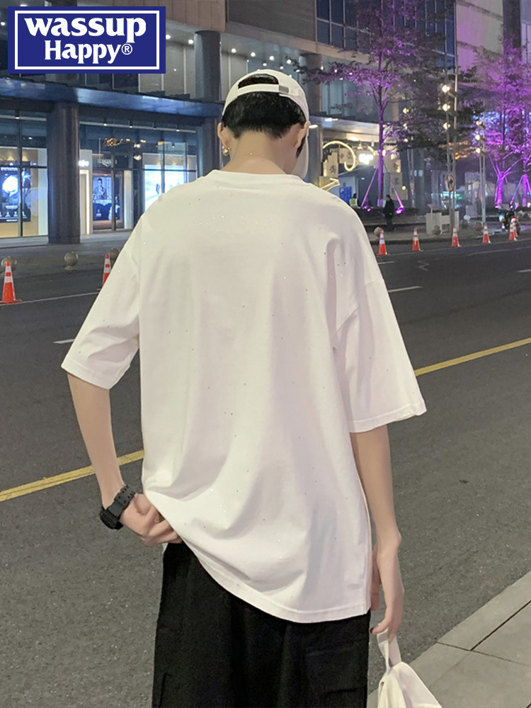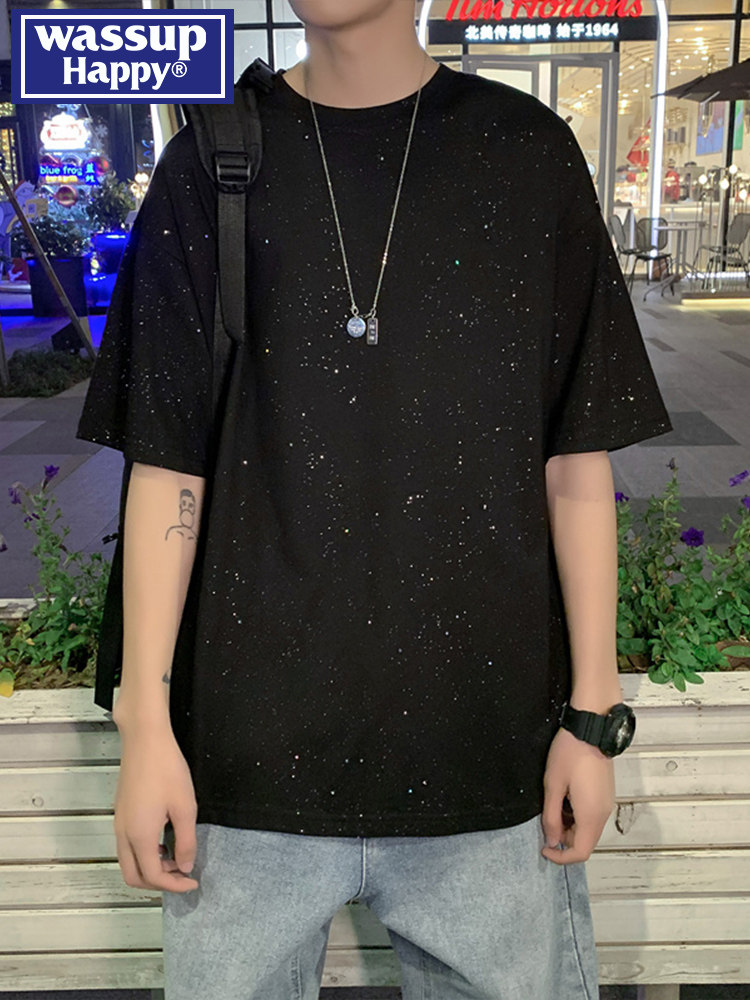 wassup happy满天星短袖t恤男美式潮牌重磅大码衣服夏季宽松半袖