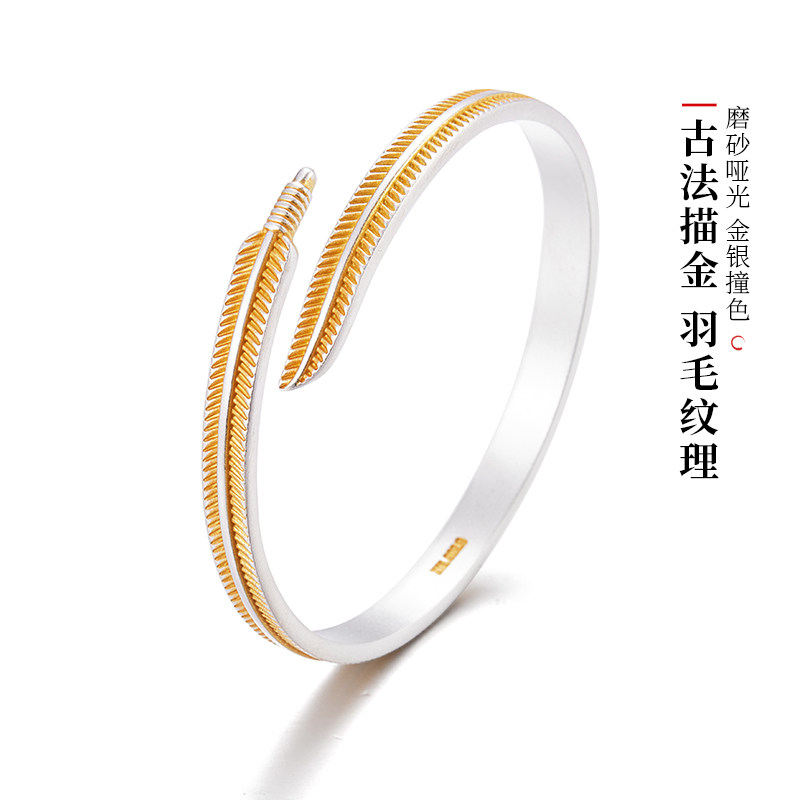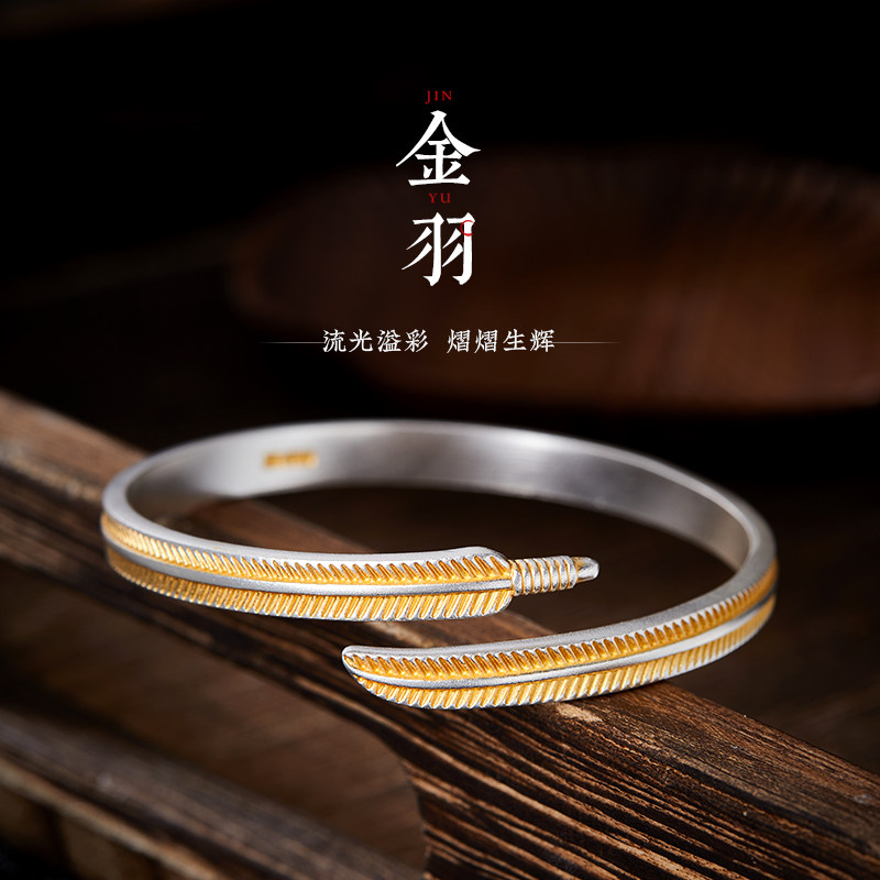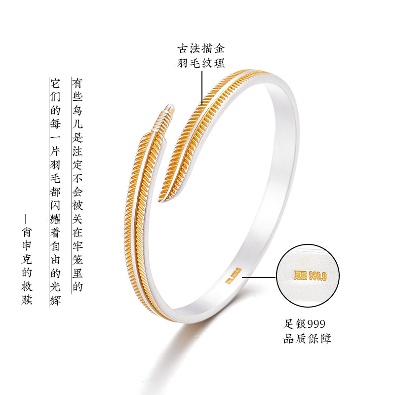 --------------------- 纯银鎏金【金羽】手镯男女简约百搭24K描金999足银手环送女友手饰 【原售价】1017元 【现售价】1017元 【推荐理由】