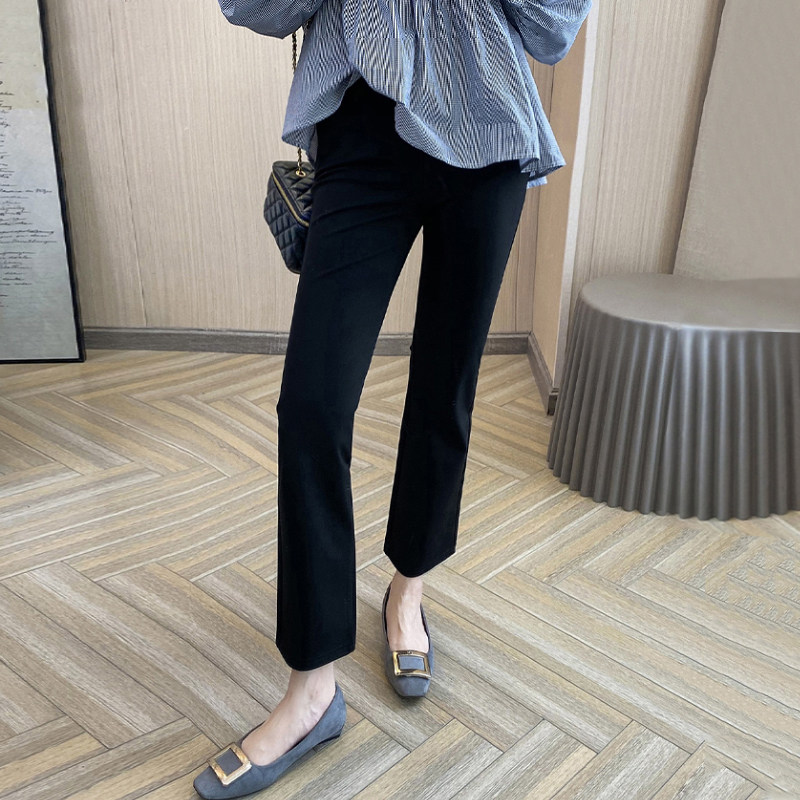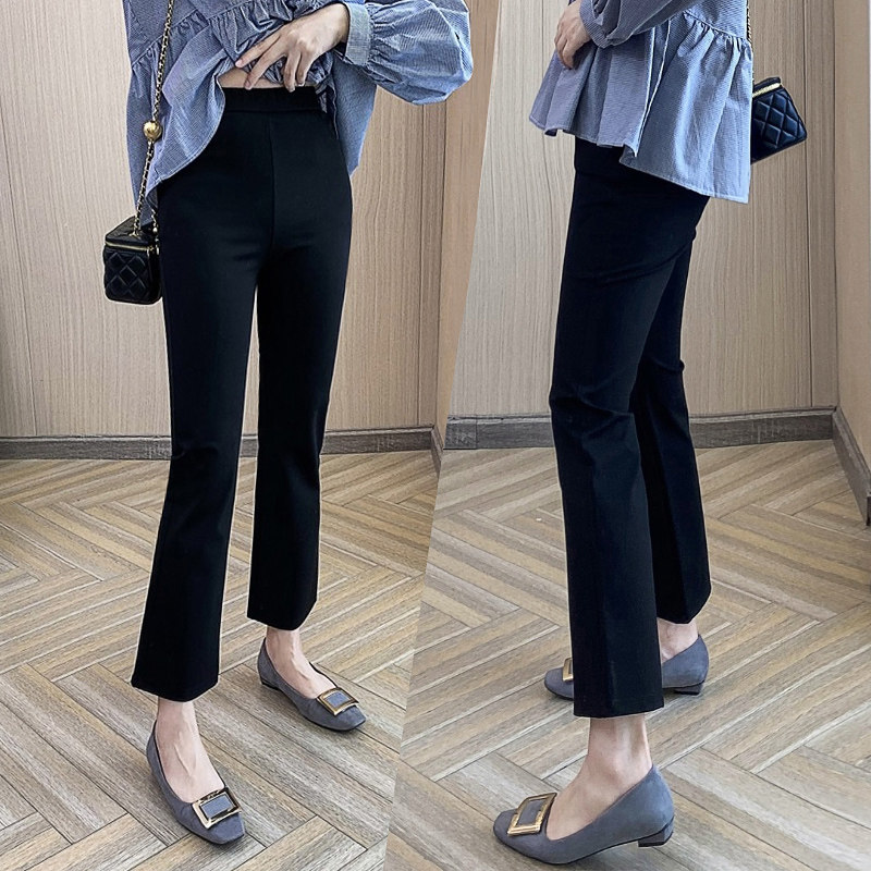 淘宝九分微喇裤女2021春秋新款休闲女裤高腰显瘦八分小个子直筒喇叭裤