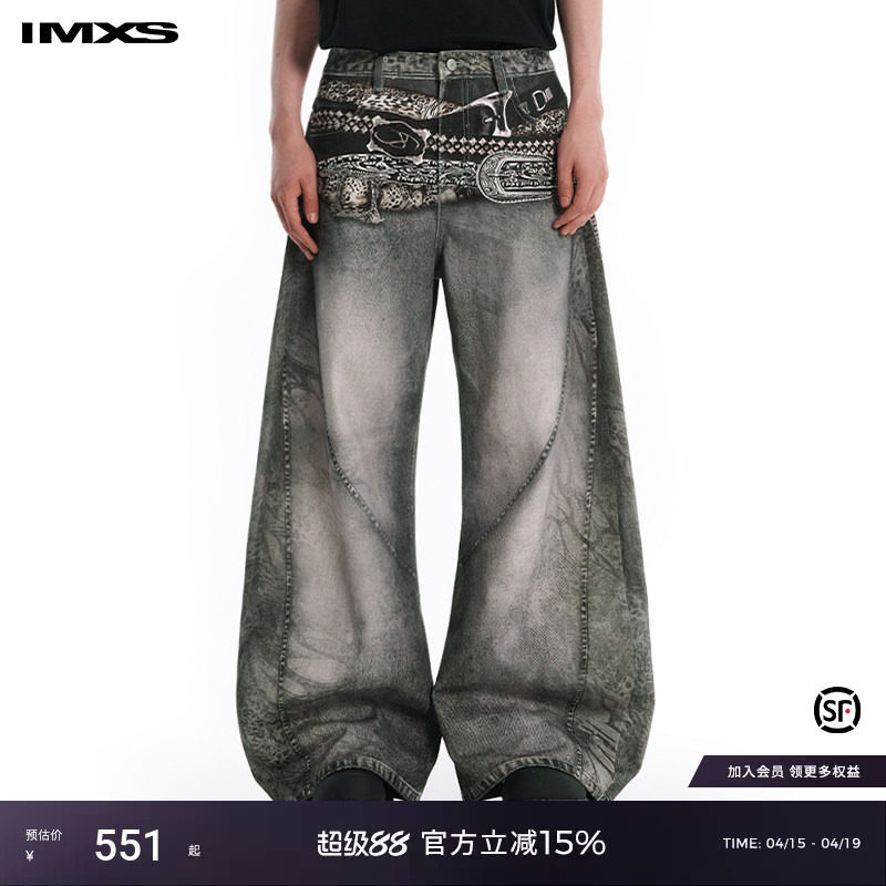 --------------------- 【明星同款】IMXS腰带印花美式复古弯刀裤松弛感镰刀裤牛仔裤男女 【原售价】649元 【现售价】551元 【推荐理由】