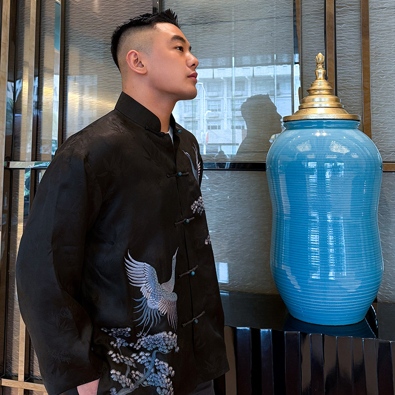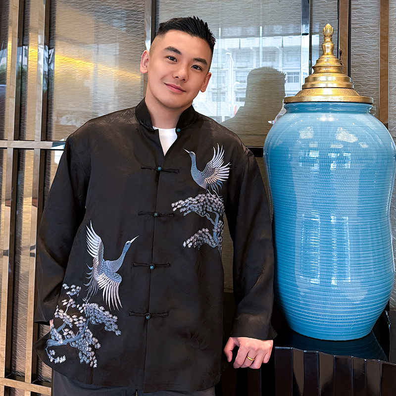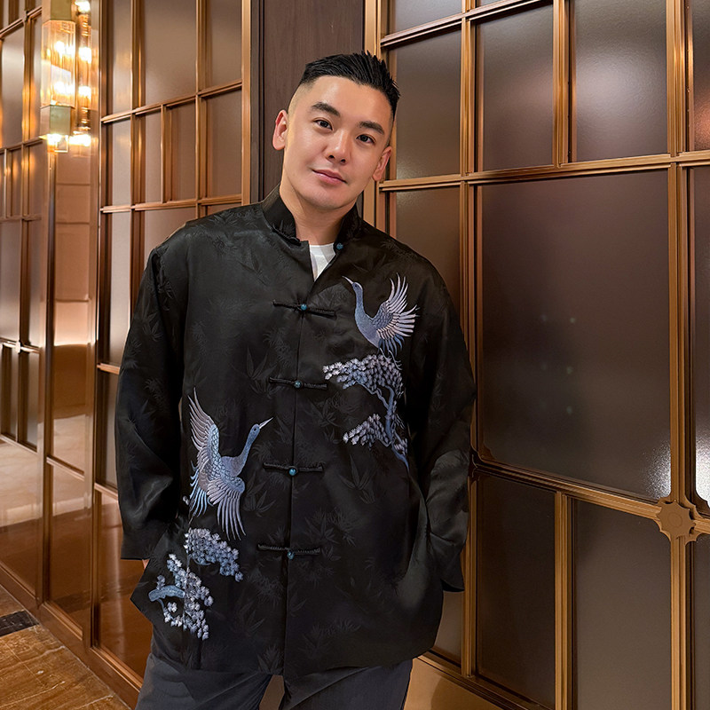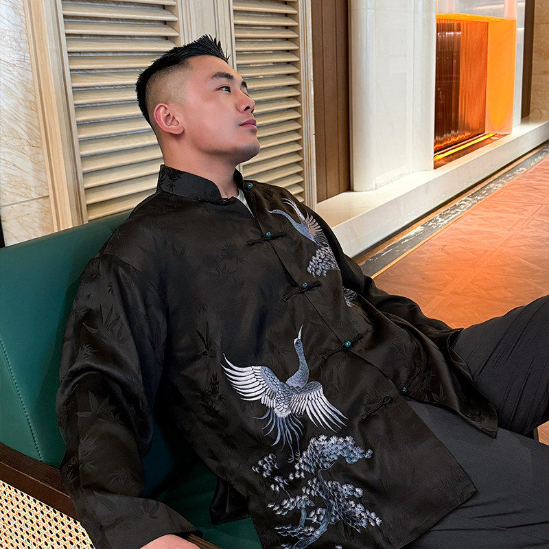 延年三重门2026年刺绣正宗香云纱高端外套国潮盘扣上衣桑蚕丝男款