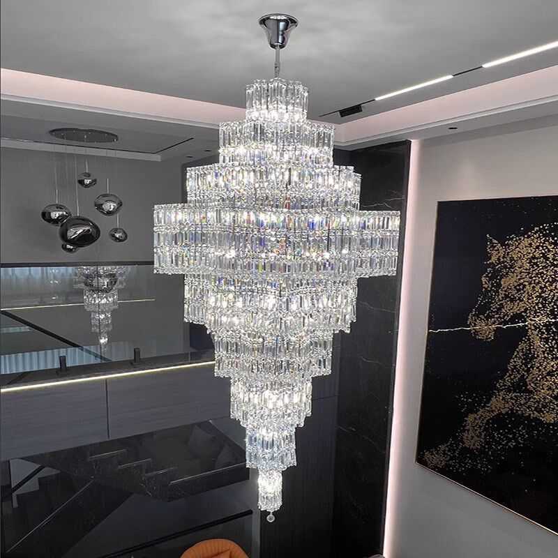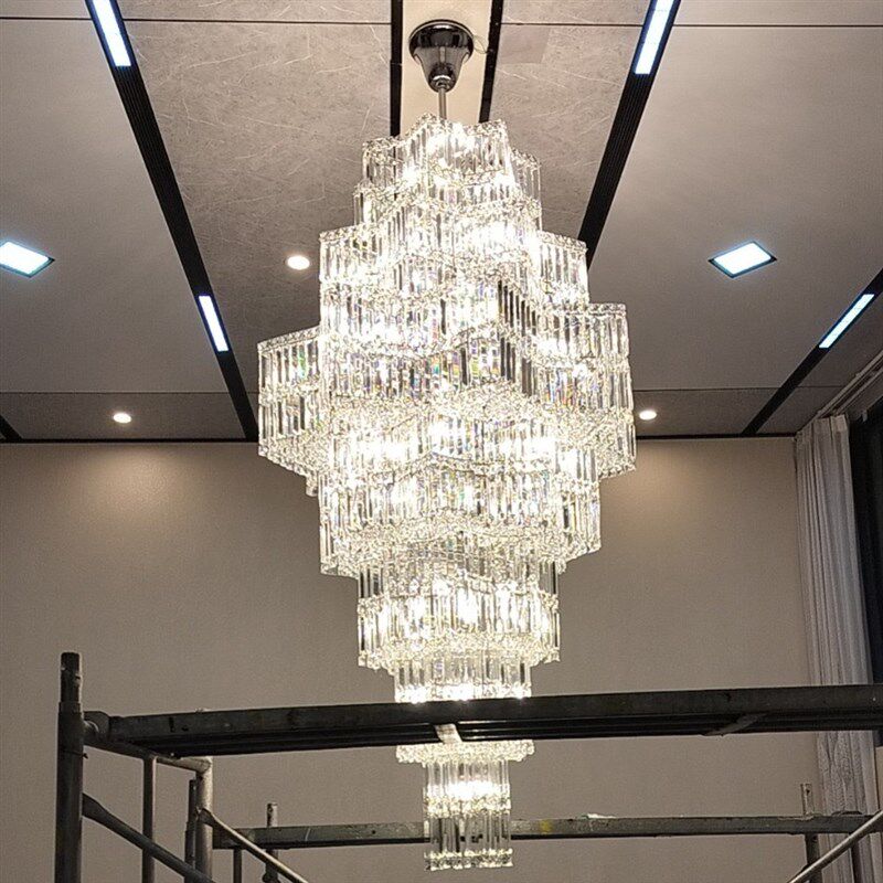 淘宝豪华别墅客厅水晶吊灯复式楼中空楼梯长吊灯高端新中式挑空大吊灯