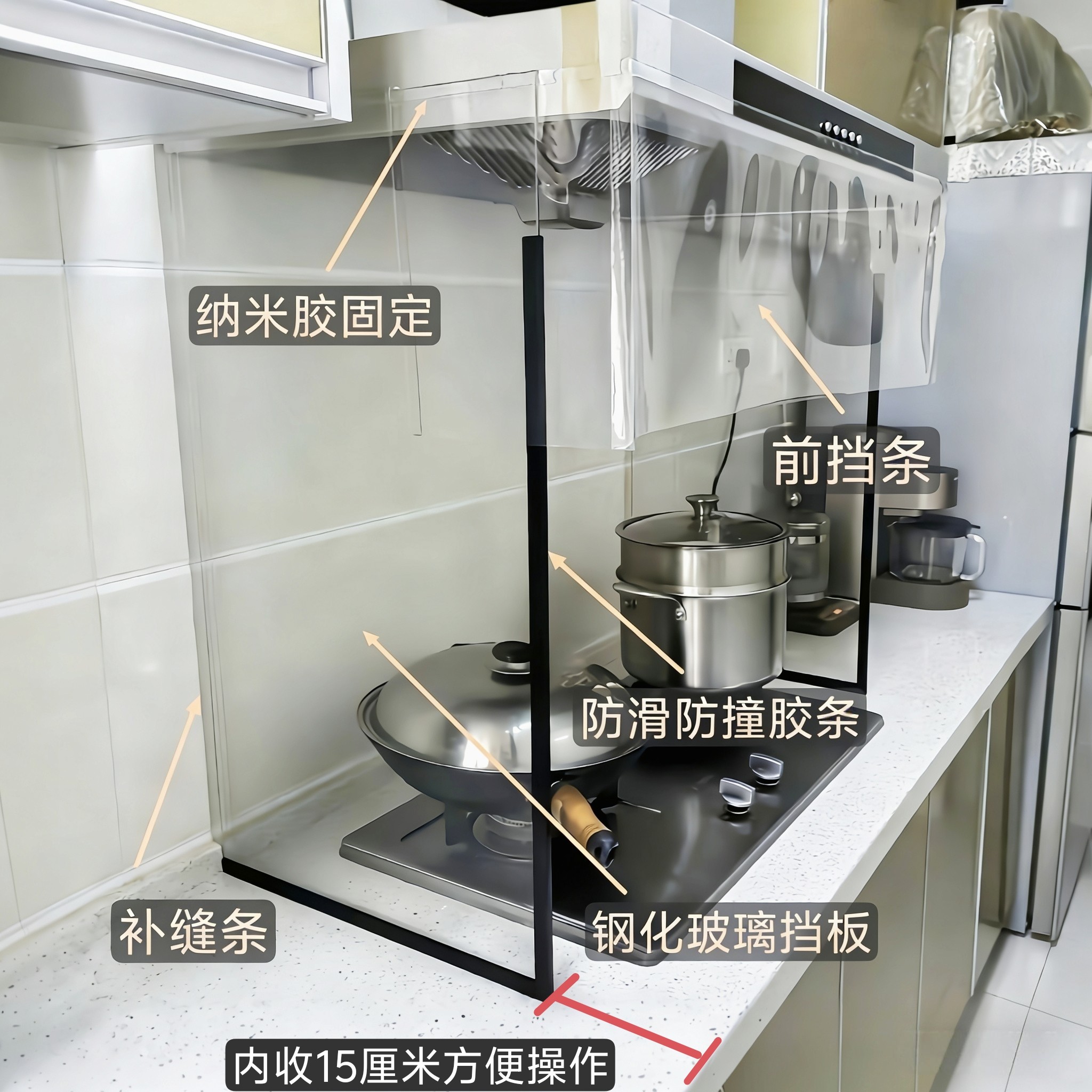 油烟机拢烟罩防油神器挡油烟罩透明耐高温钢化玻璃挡油板防溅挡板