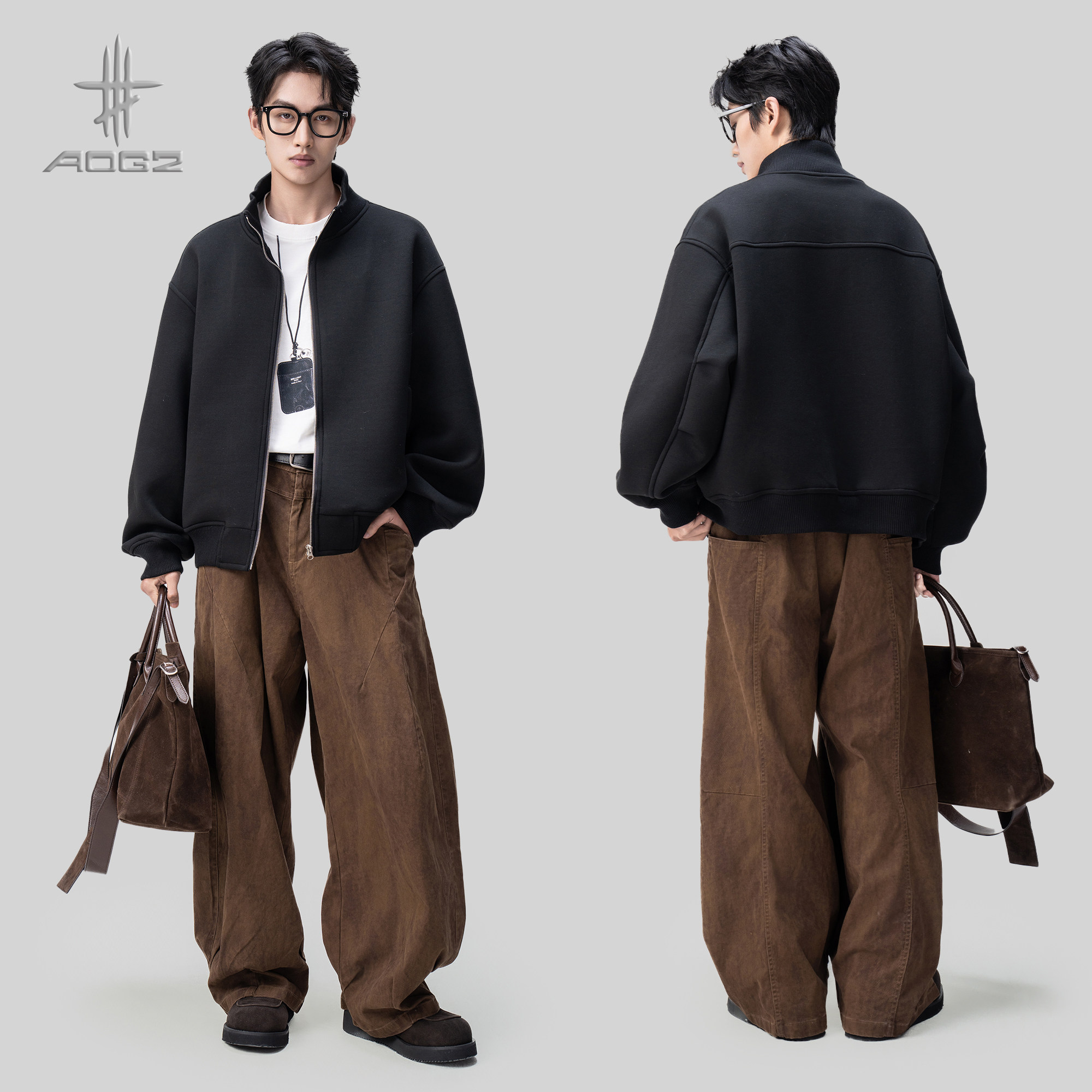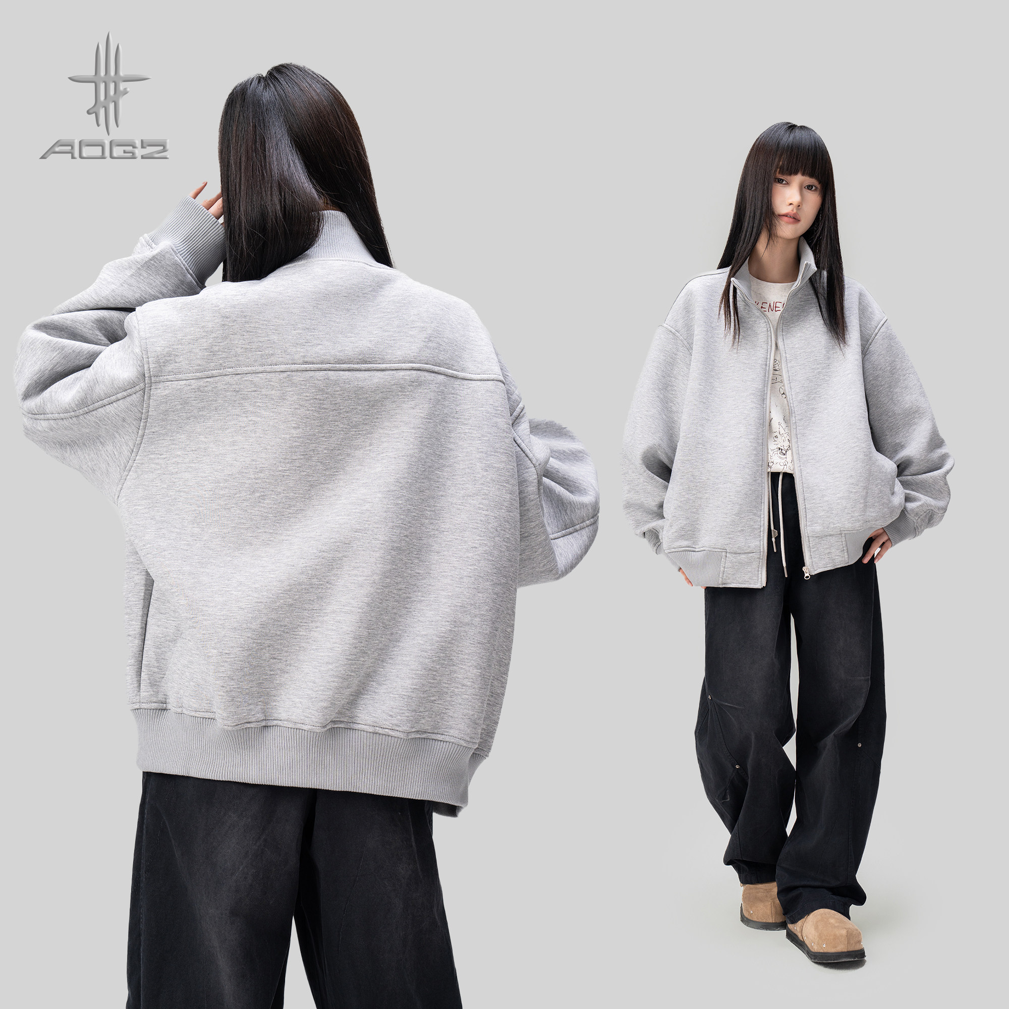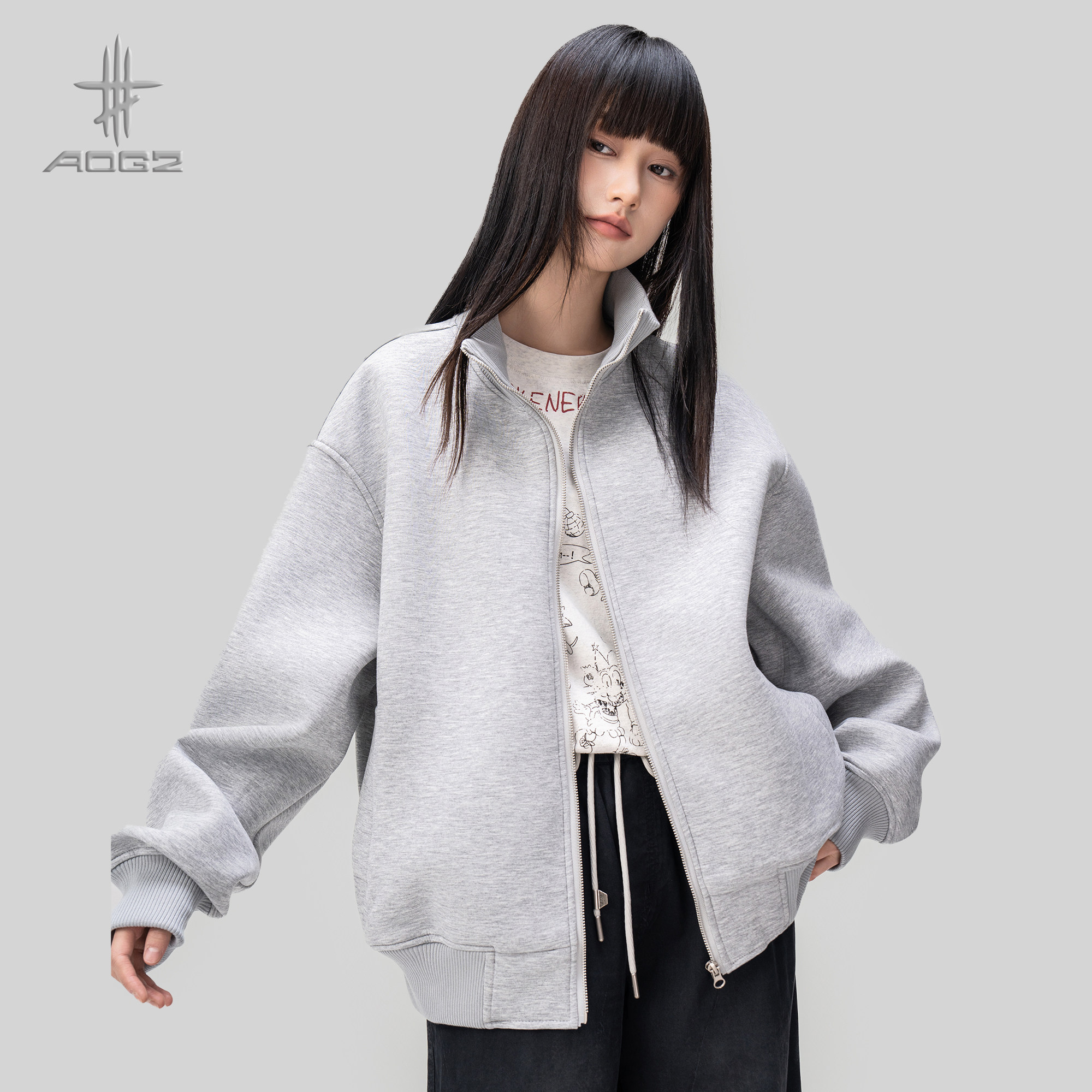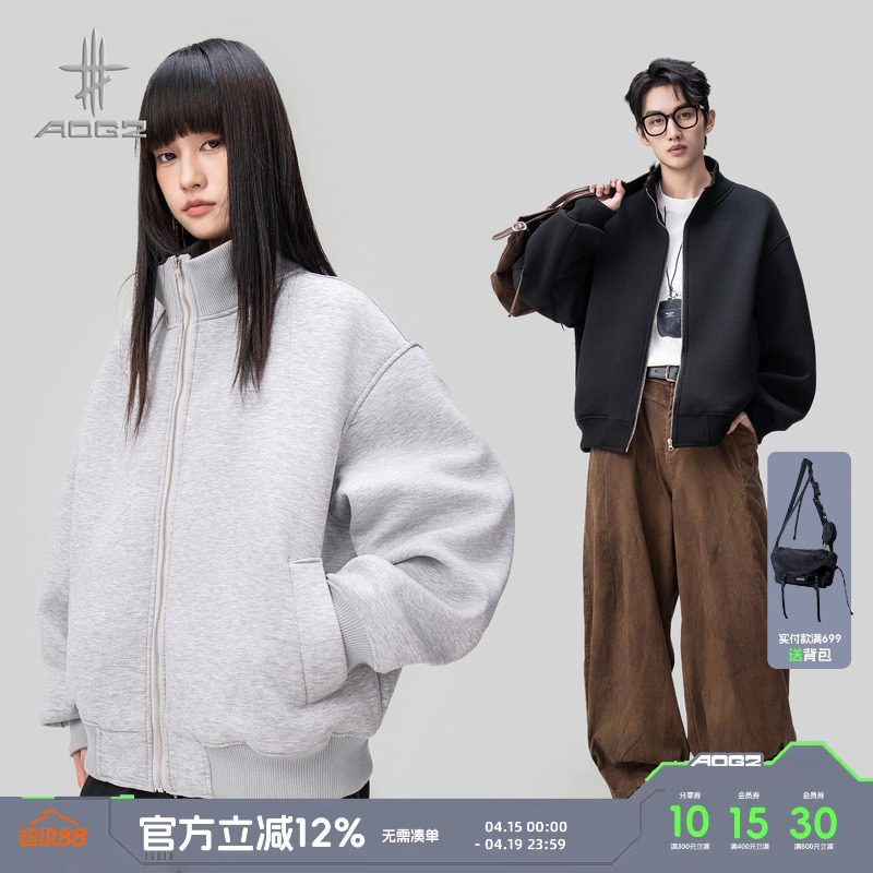 淘宝AOGZ美式空气层开衫夹克男女生2026新款春季纯色休闲复古运动外套