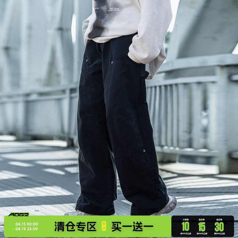 AOGZ潮牌重磅纯棉工装裤男生春季新款美式高街休闲直筒裤伐木裤子
