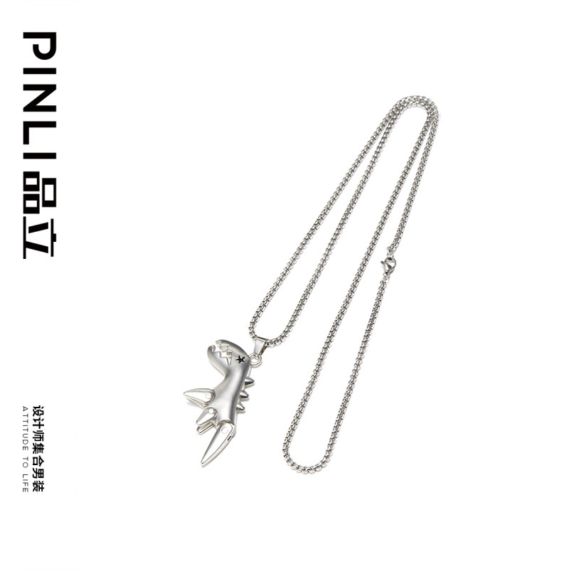 PINLI品立夏季男士配饰潮流恐龙吊坠项链饰品首饰D222128349