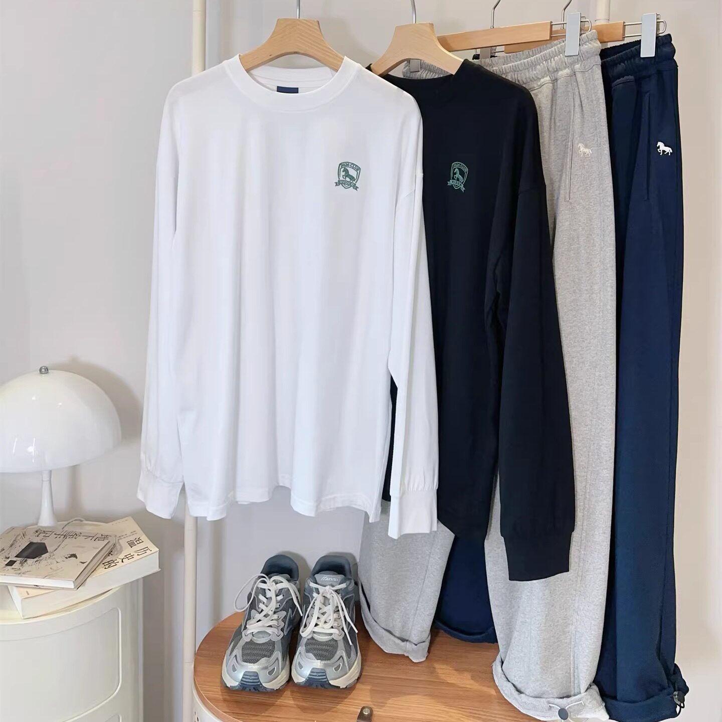 青少年小马刺绣纯棉长袖T恤男大童春季潮牌t初高中学生基础打底衫