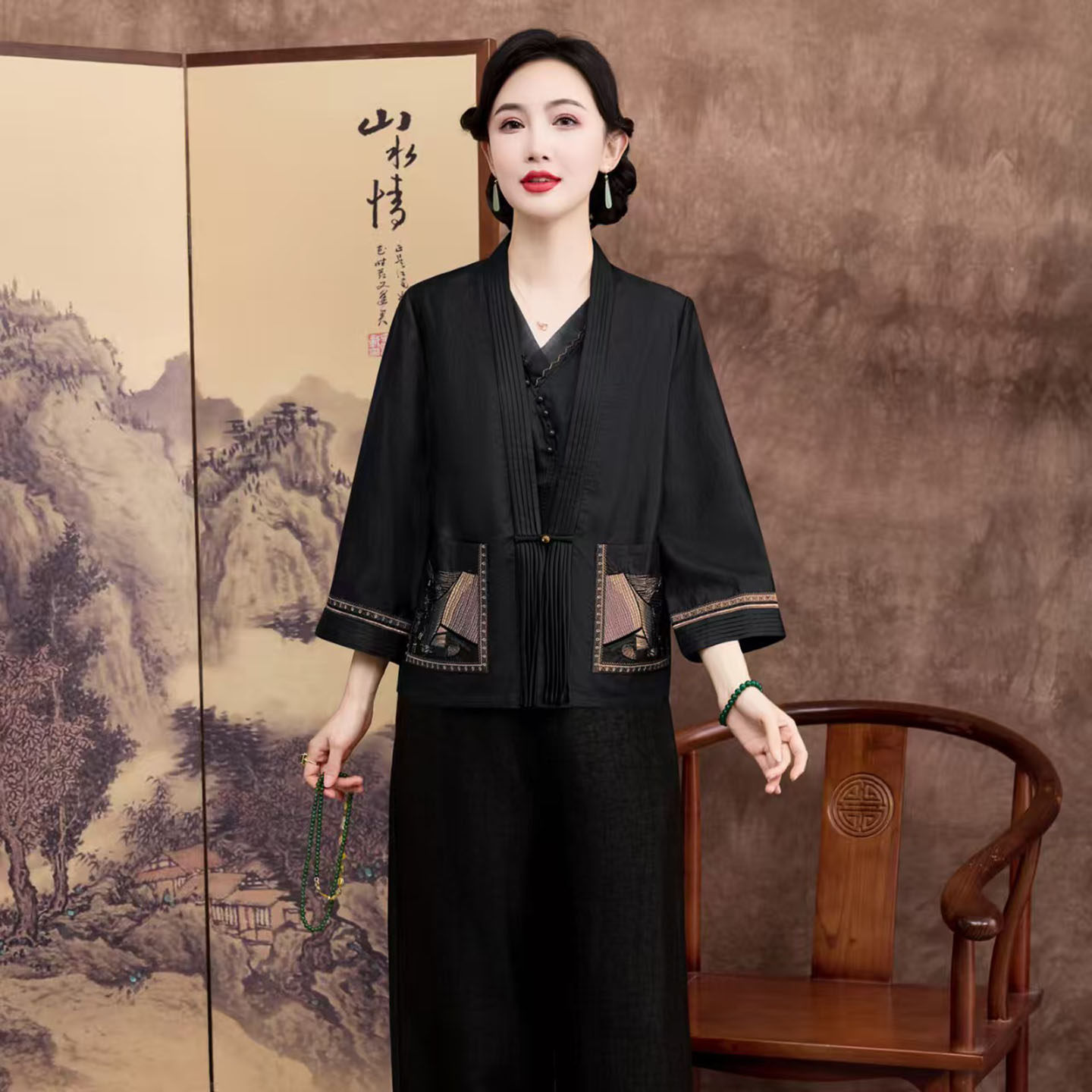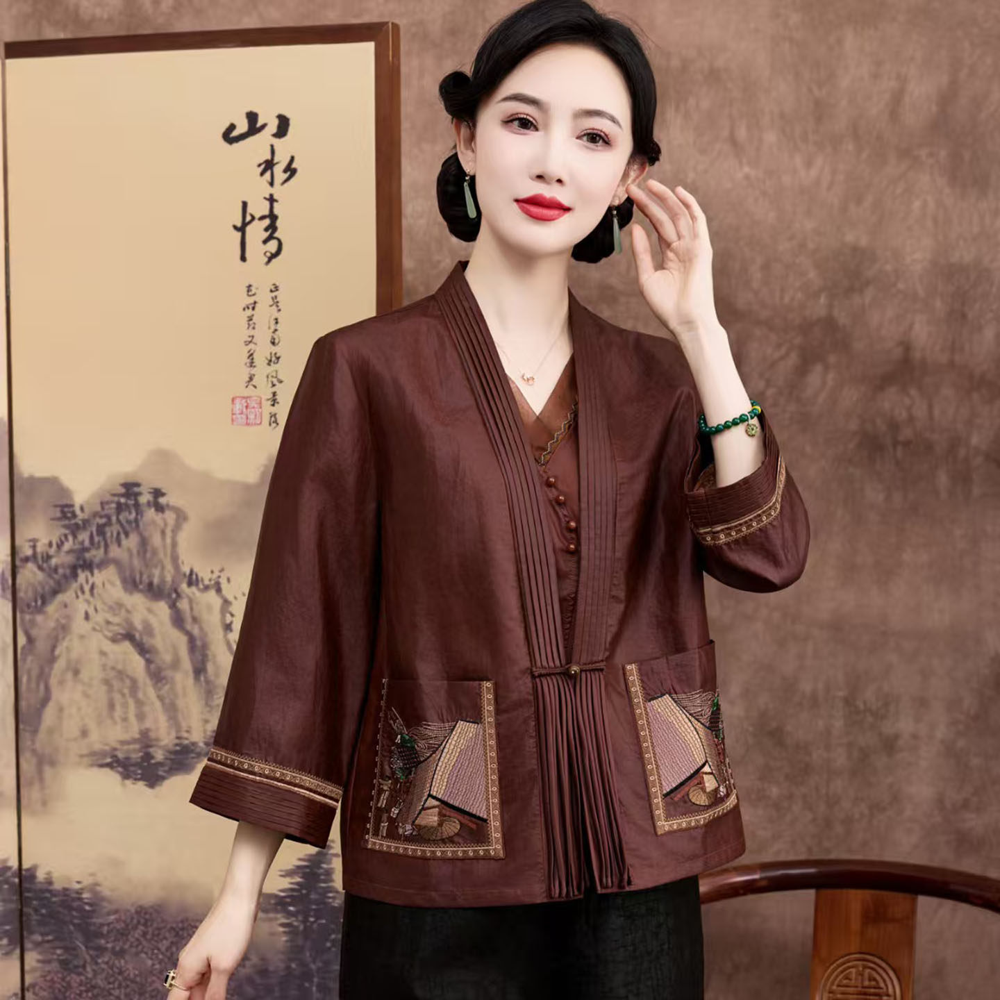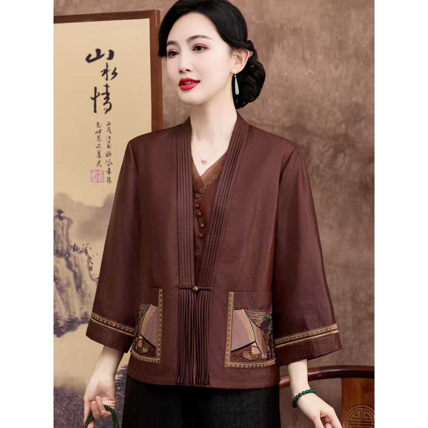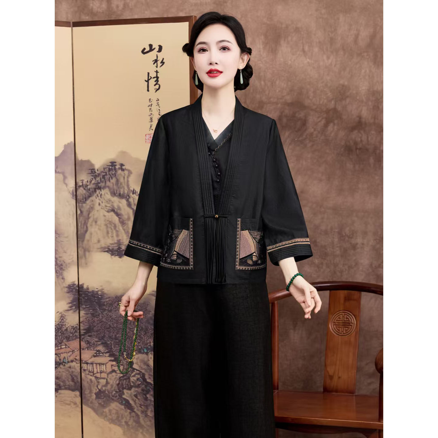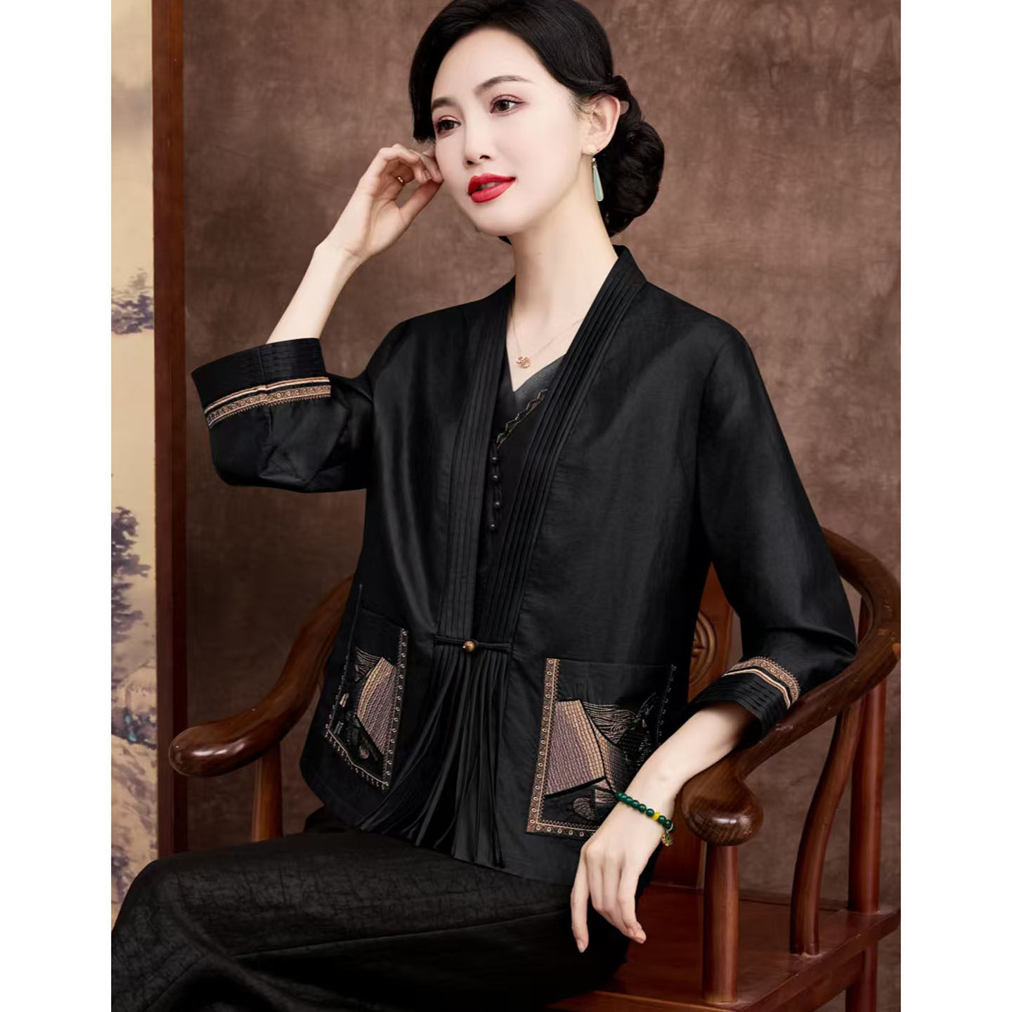 淘宝新中式重磅真丝桑蚕丝薄外套女气质高级感短款高端小资小上衣大码