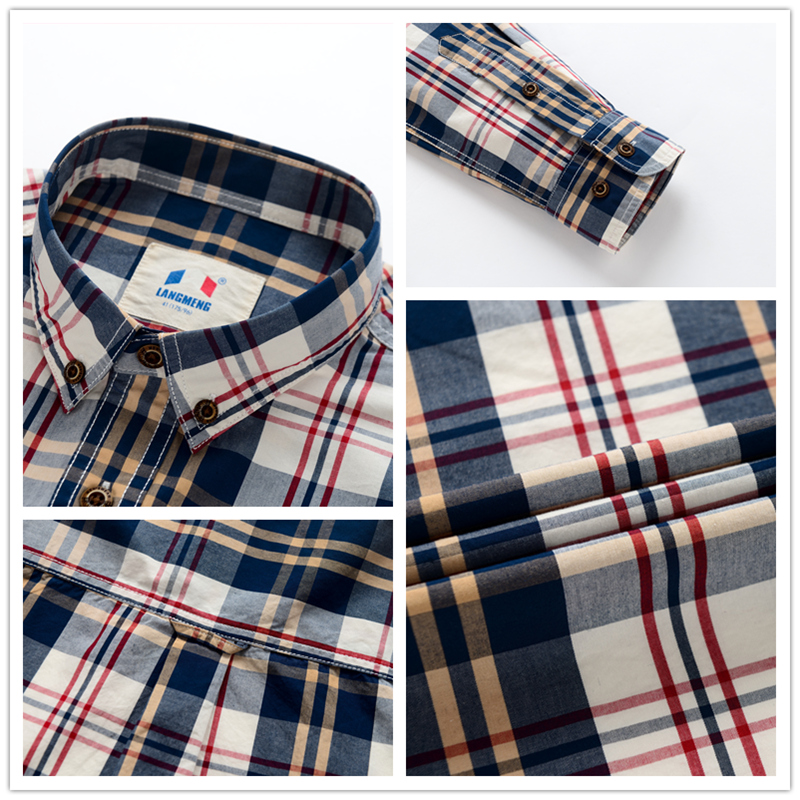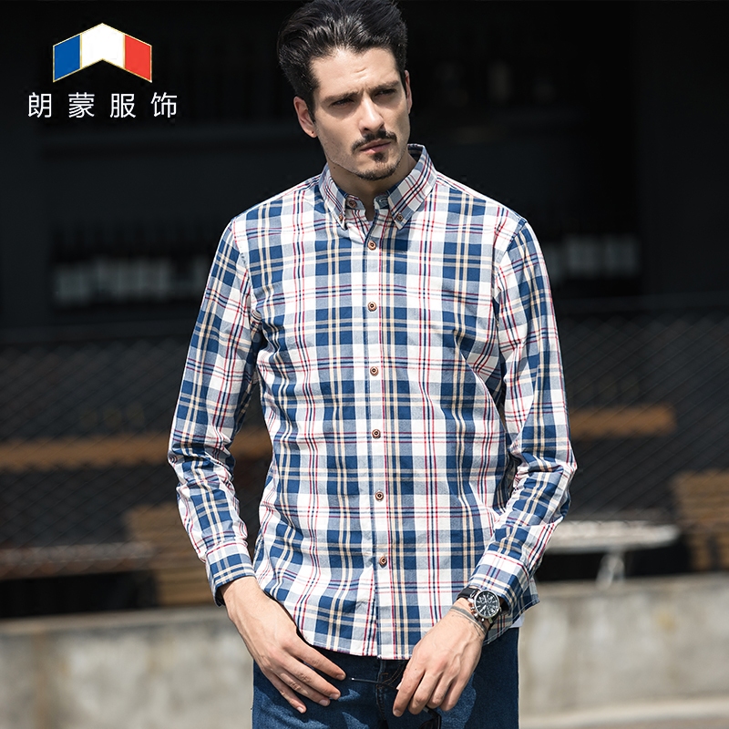 --------------------- 朗蒙春季纯棉碳素磨毛长袖格子衬衫男士休闲韩版修身百搭时尚衬衣 【原售价】359元 【现售价】43.9元 【推荐理由】