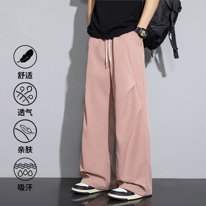 WASSUP ITIT日系冰丝阔腿裤男夏季宽松垂感休闲长裤直筒裤子男款