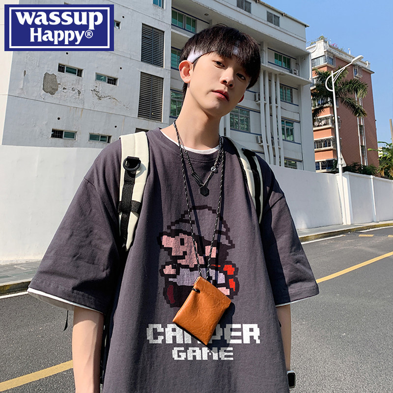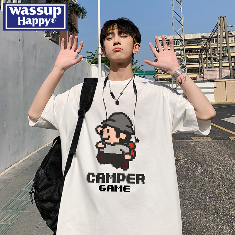 --------------------- wassup happy卡通短袖t恤男款夏季美式潮牌高街半袖休闲宽松上衣 【原售价】499元 【现售价】139元 【推荐理由】