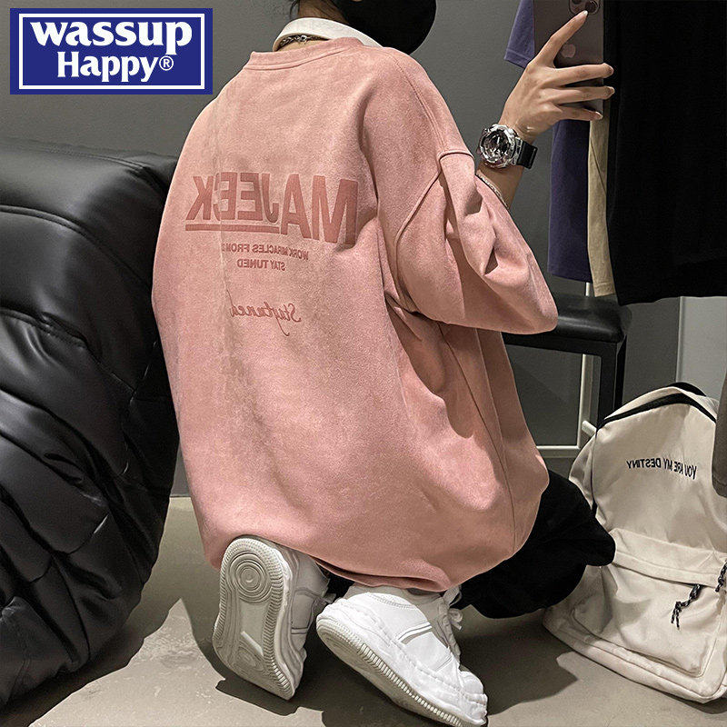 wassup happy麂皮绒短袖t恤男夏季新款美式复古潮牌休闲圆领体恤