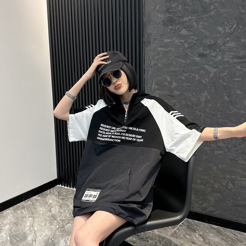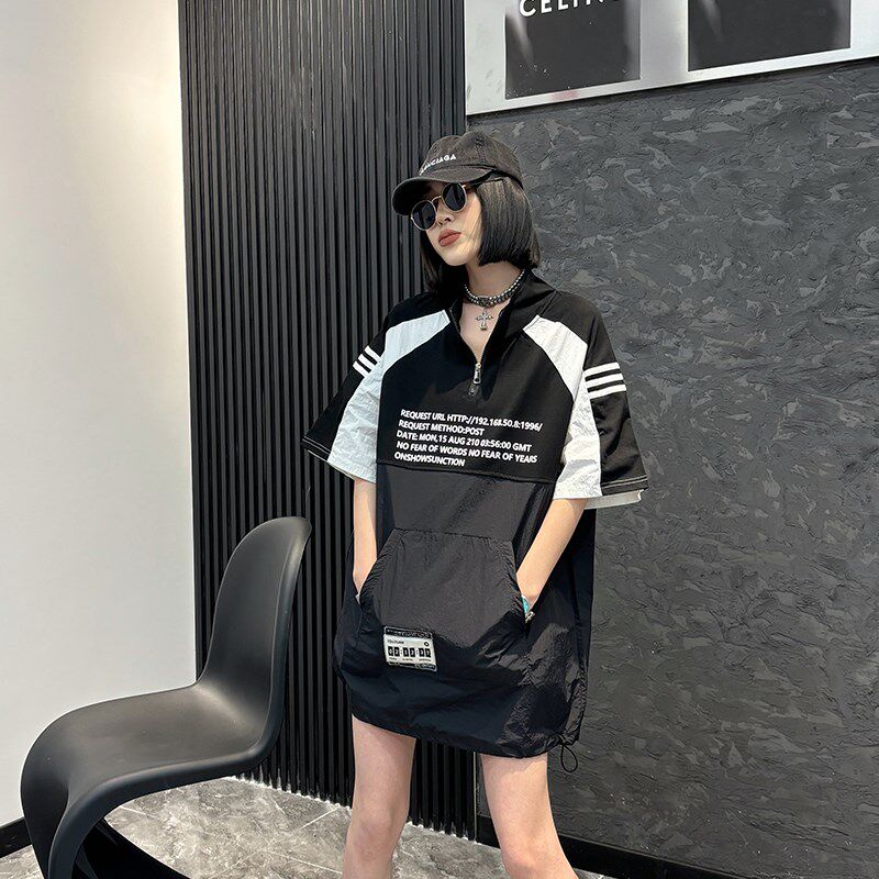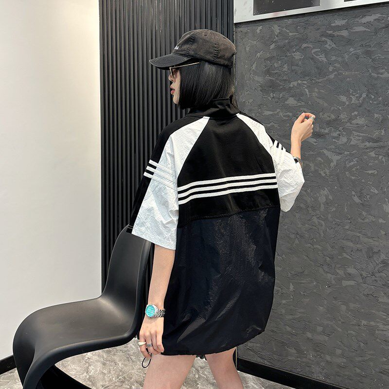 --------------------- 加大码女装立领拉链拼接撞色短袖胖妹妹2024春秋新款百搭休闲上衣 --------------------- --------------------- 【原价】195元 【券后价】166元
