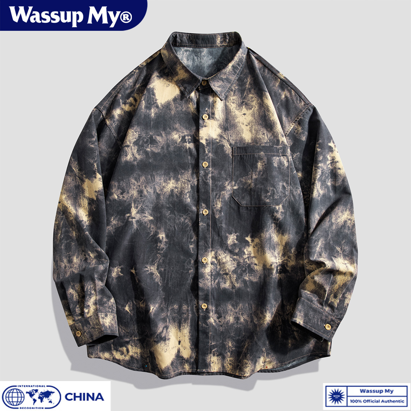--------------------- WASSUP MY美式复古扎染衬衫男春秋宽松休闲长袖衬衣潮牌痞帅外套 【原售价】268元 【现售价】78.3元 【推荐理由】