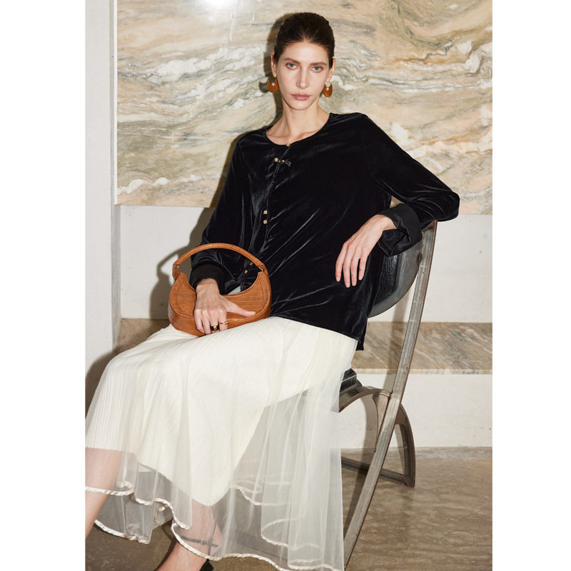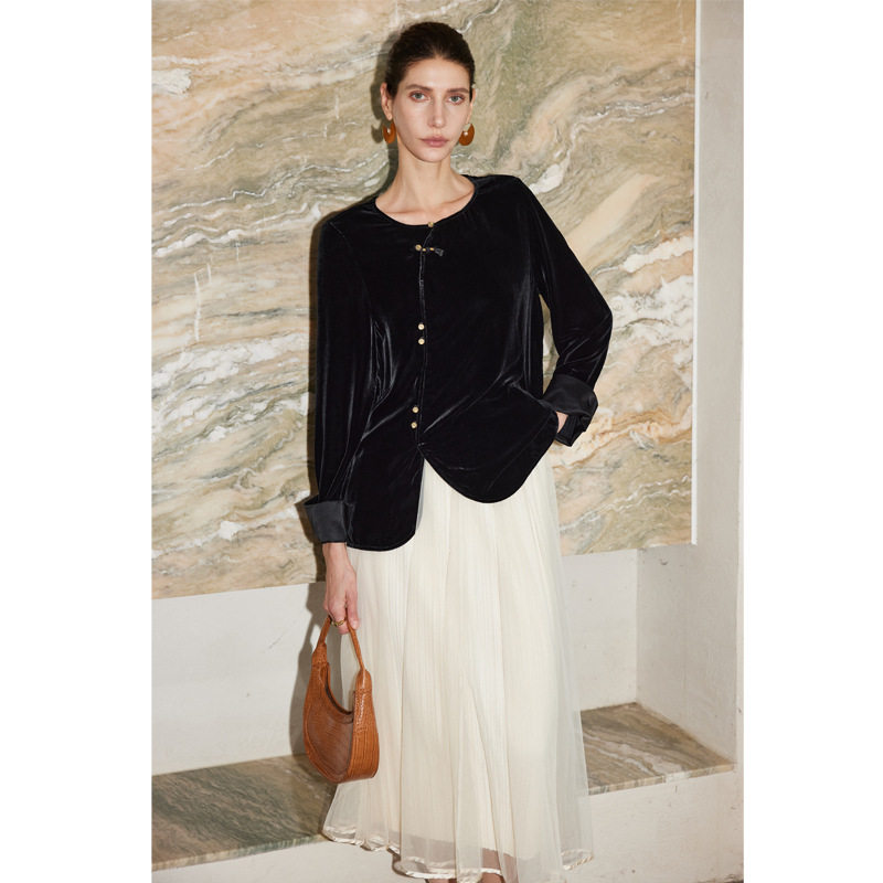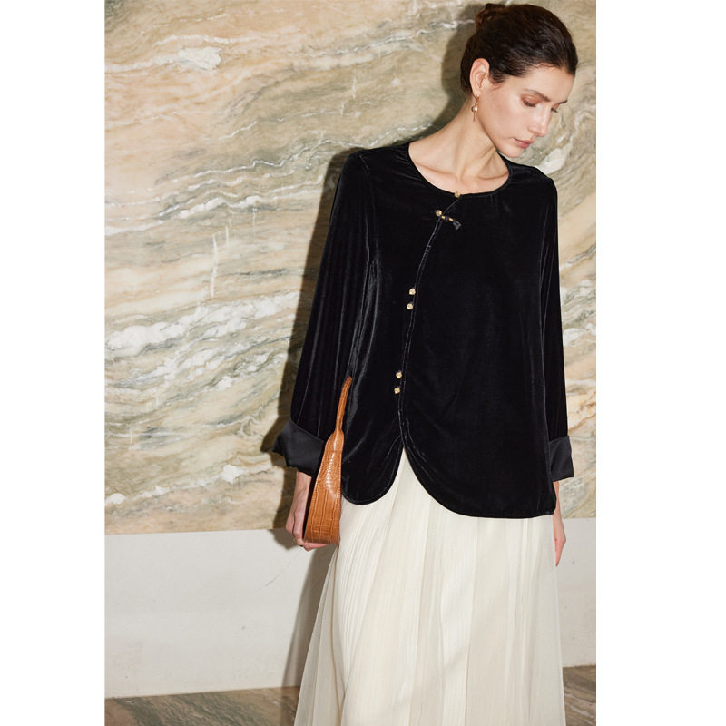 --------------------- 真丝丝绒上衣女2026秋冬外穿圆领新中式国风纯色桑蚕丝短外套 【原售价】566元 【现售价】498元 【推荐理由】