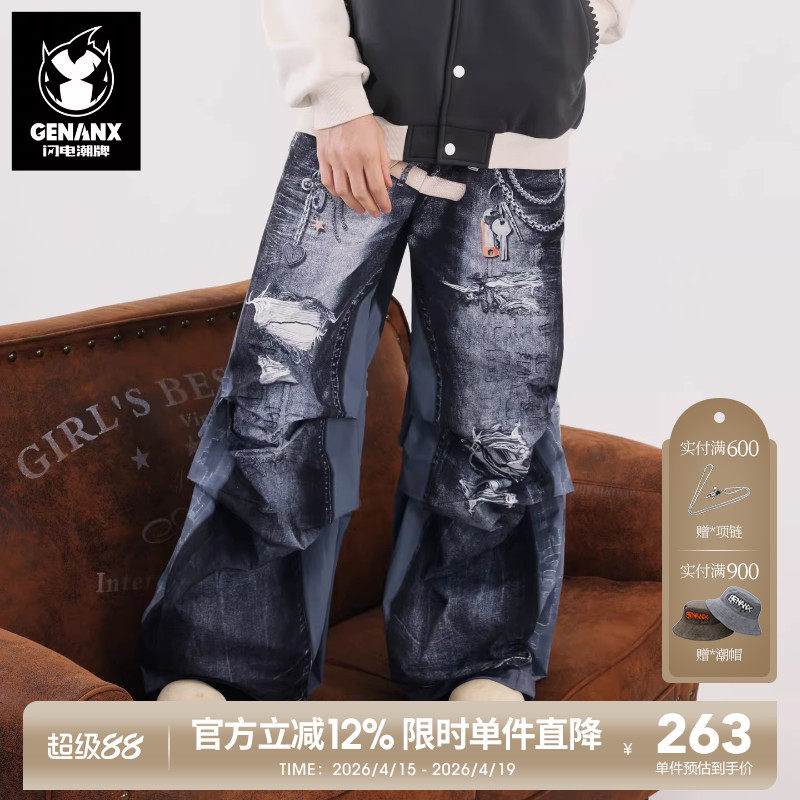 --------------------- GENANX闪电潮牌2025秋季阔腿裤拖地仿牛仔裤印花休闲裤王橹杰同款 【原售价】299元 【现售价】248元 【推荐理由】