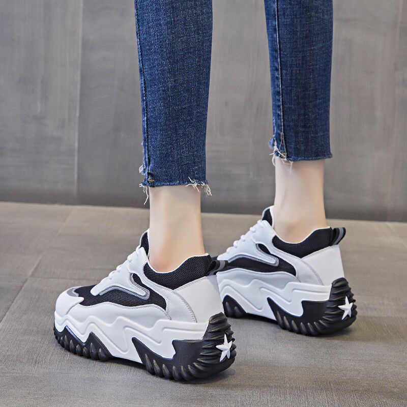 8cm内增高老爹鞋女真皮2023新款厚底夏秋透气小白休闲百搭运动鞋