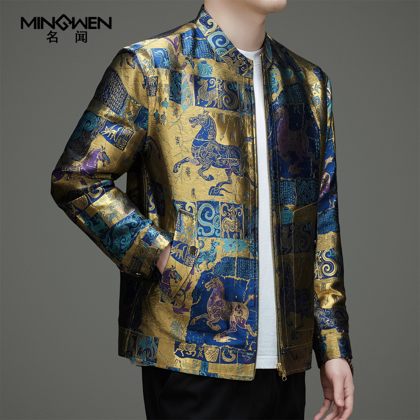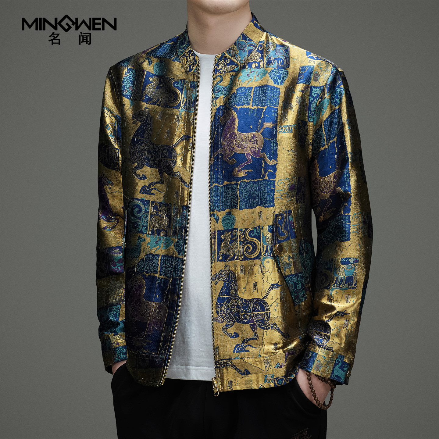 --------------------- 香云纱真丝立领夹克男时尚潮流高级感新中式国潮风印花桑蚕丝外套 【原售价】2278元 【现售价】1318元 【推荐理由】