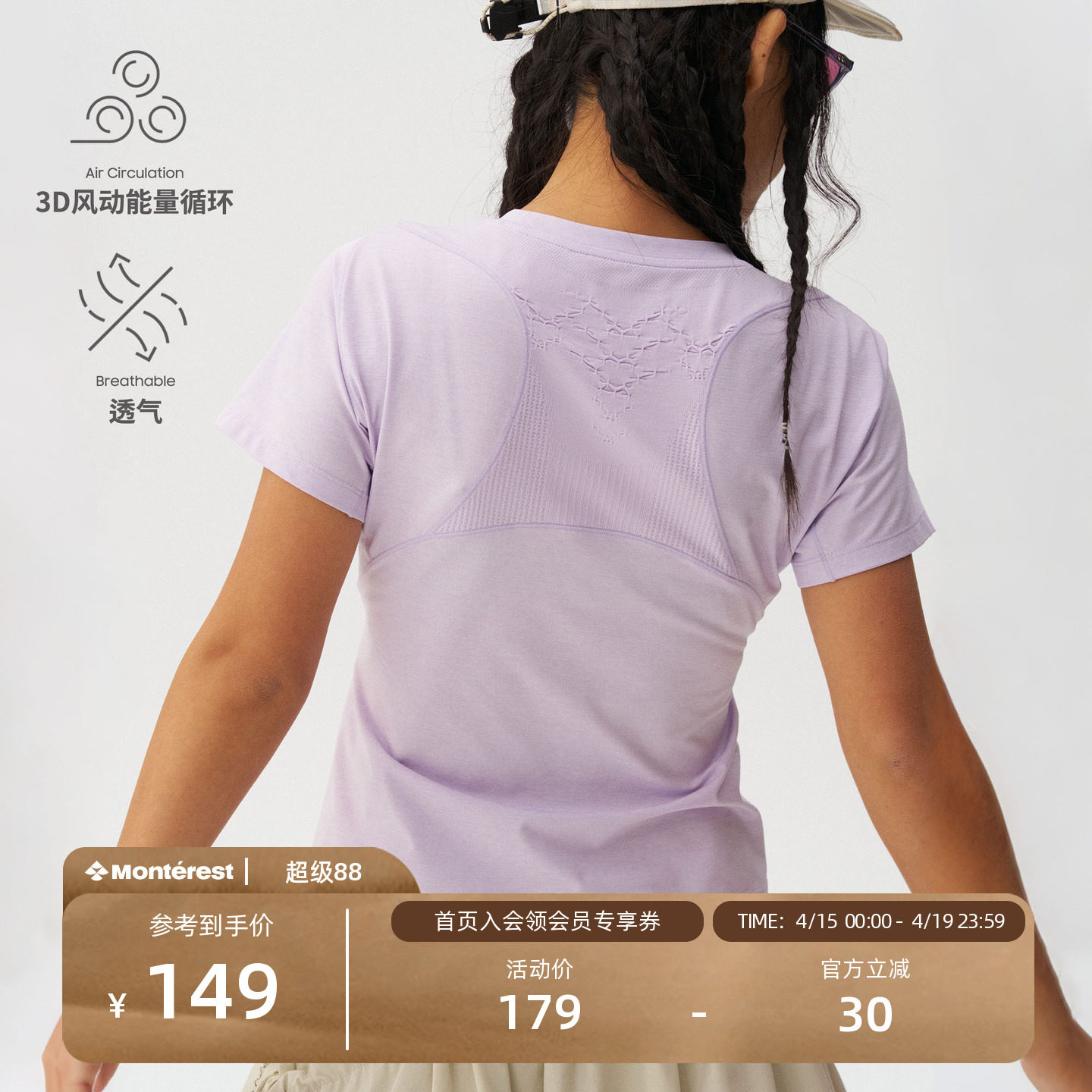 --------------------- 瞬时山野Monterest织风呼吸衣户外3A抗菌吸湿速干修身短袖T恤女 【原售价】199元 【现售价】149元 【推荐理由】