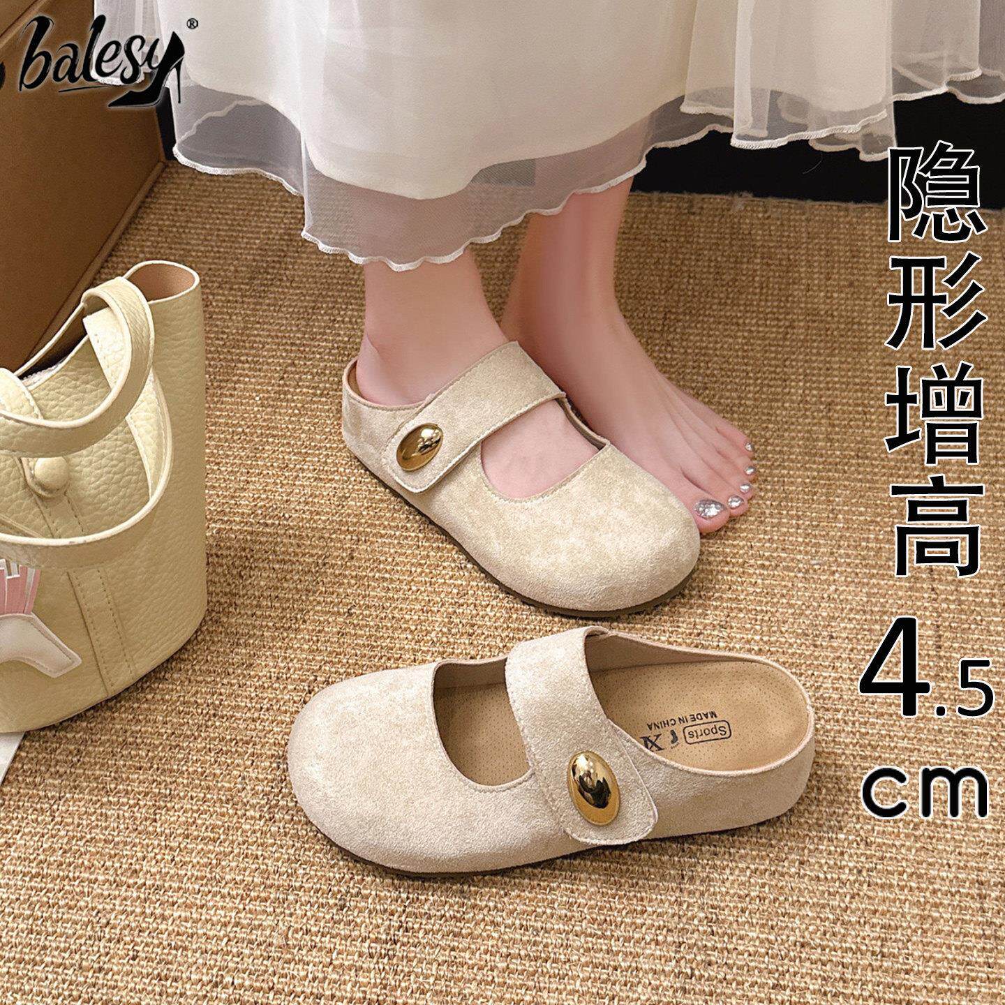 英国真皮内增高勃肯鞋女夏季外穿2026新款厚底包头半拖鞋懒人凉拖