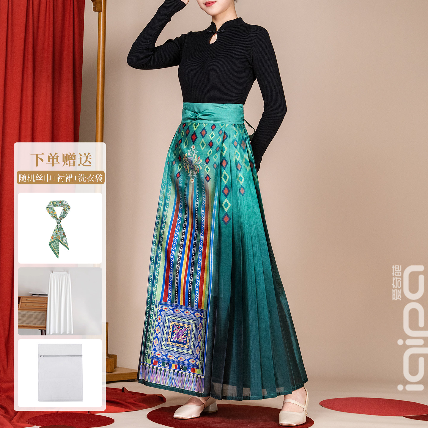 淘宝爱奇葩iqipa 2026新款民族风壮族中式马面裙女吉祥寓意汉服半身裙