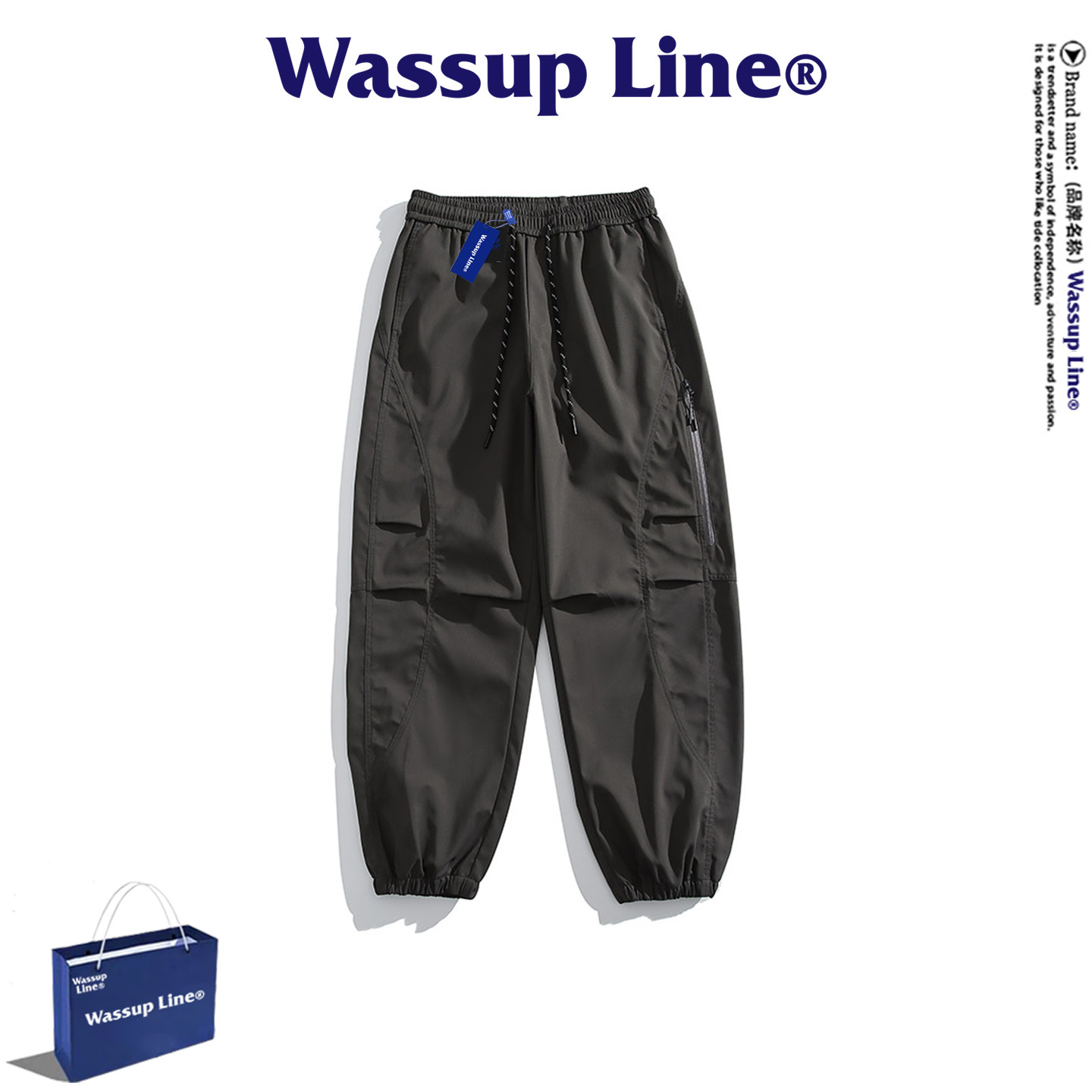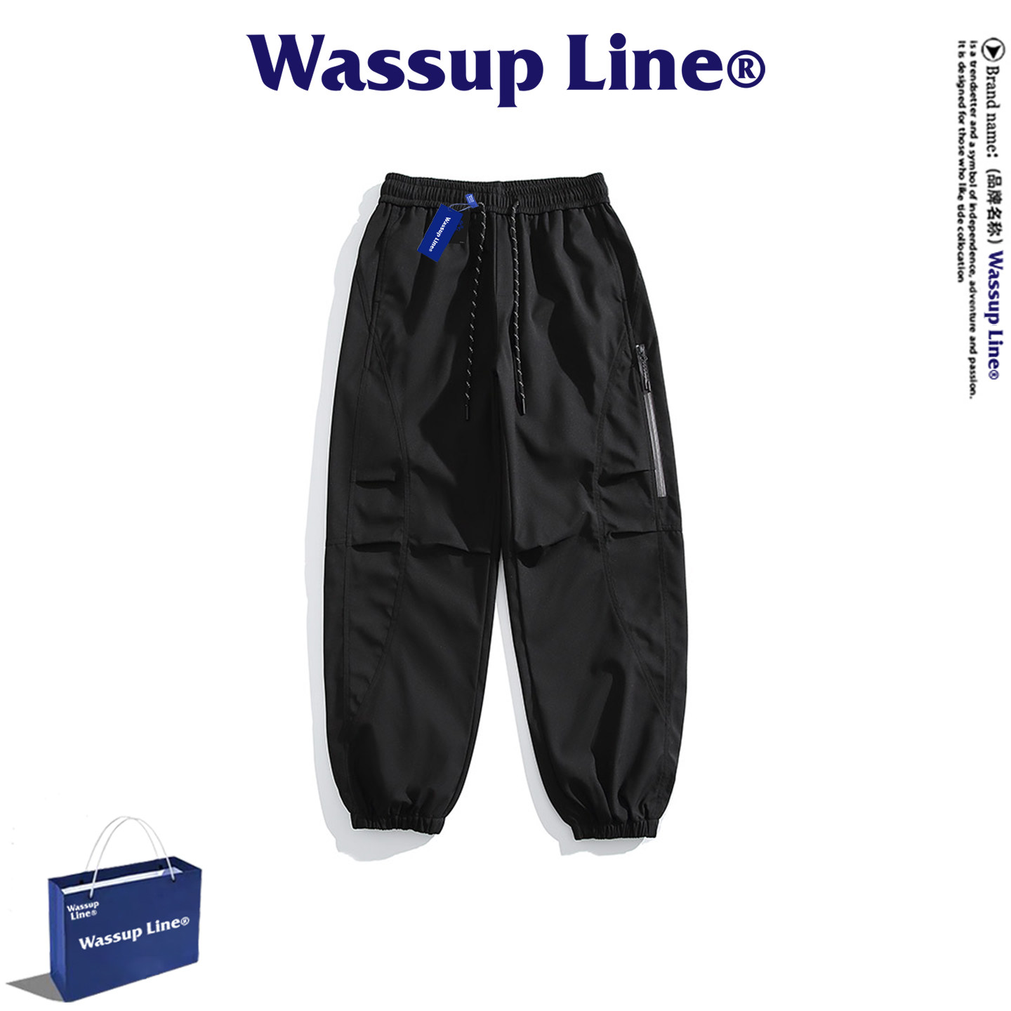 --------------------- WASSUP Line潮牌运动休闲裤男春夏季户外防水防风冲锋裤束脚长裤 【原售价】398元 【现售价】103元 【推荐理由】