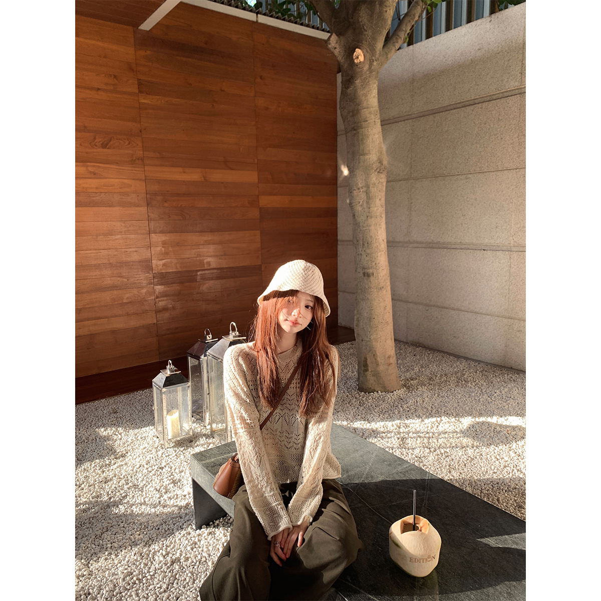 --------------------- Zzhen 温柔镂空网纱设计圆领绵羊毛针织衫春季新款宽松长袖上衣女 【原售价】203元 【现售价】178元 【推荐理由】