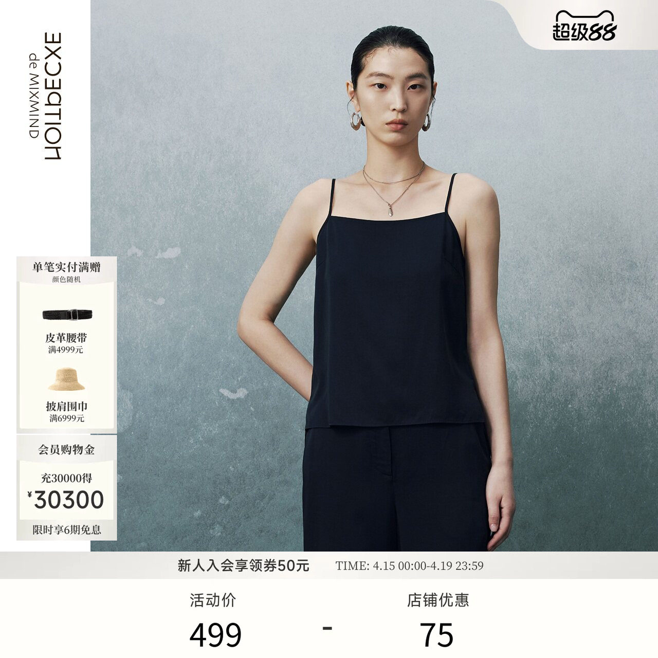 --------------------- EXCEPTION例外女装背心优雅舒适百搭细肩带吊带内搭 【原售价】499元 【现售价】424元 【推荐理由】