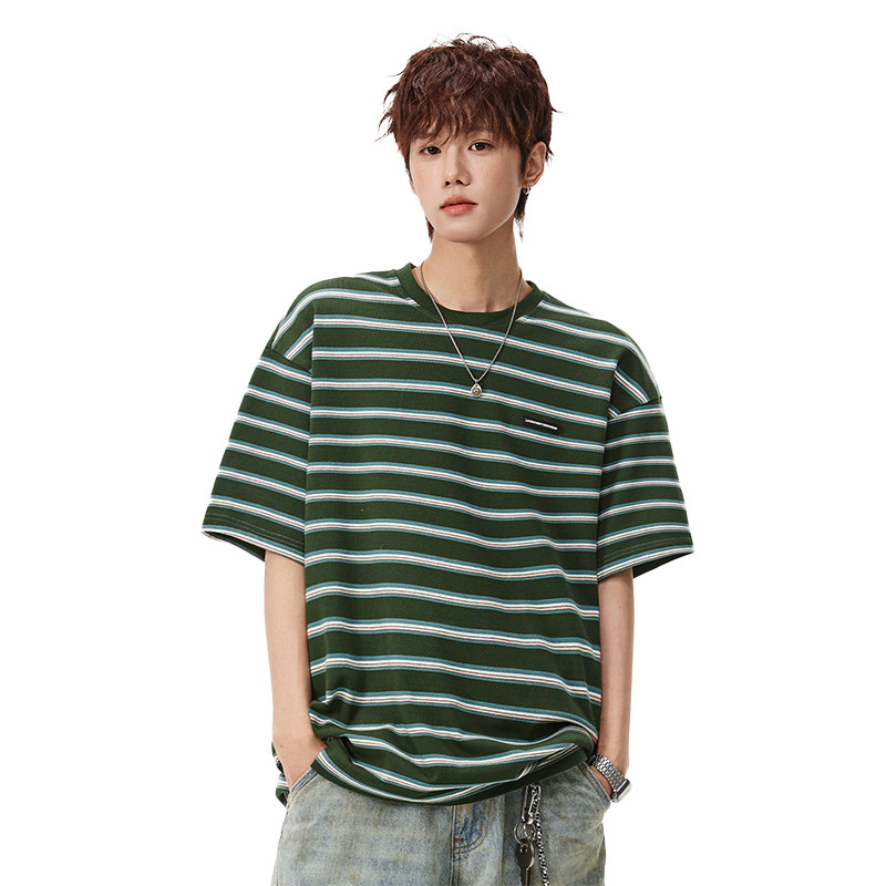 wassup happy美式复古撞色条纹短袖t恤男士夏季新款潮牌圆领上衣
