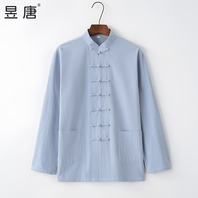 --------------------- 唐装新中式衬衫男棉麻外套复古男装立领上衣禅意茶服中山装居士服 【原售价】89元 【现售价】53.6元 【推荐理由】
