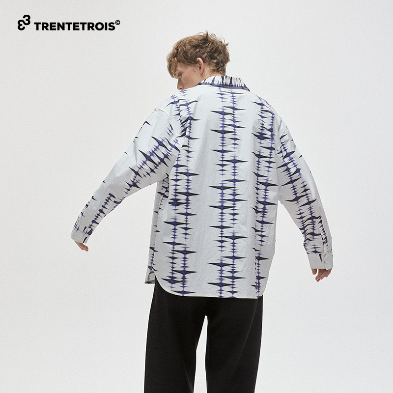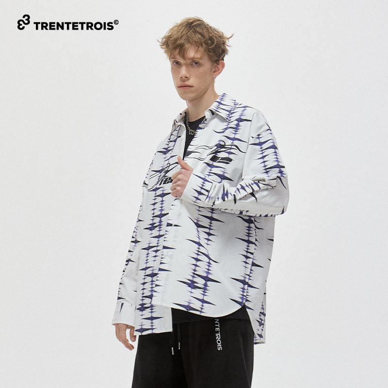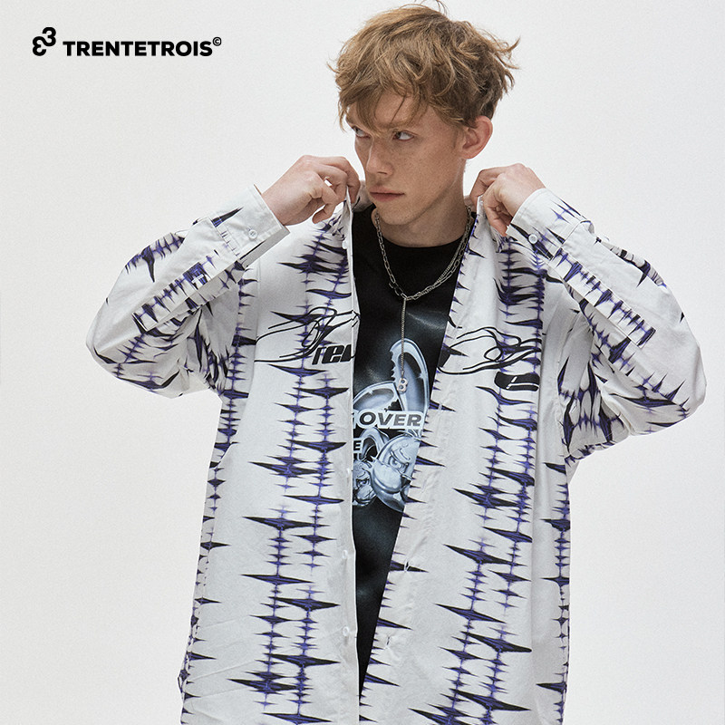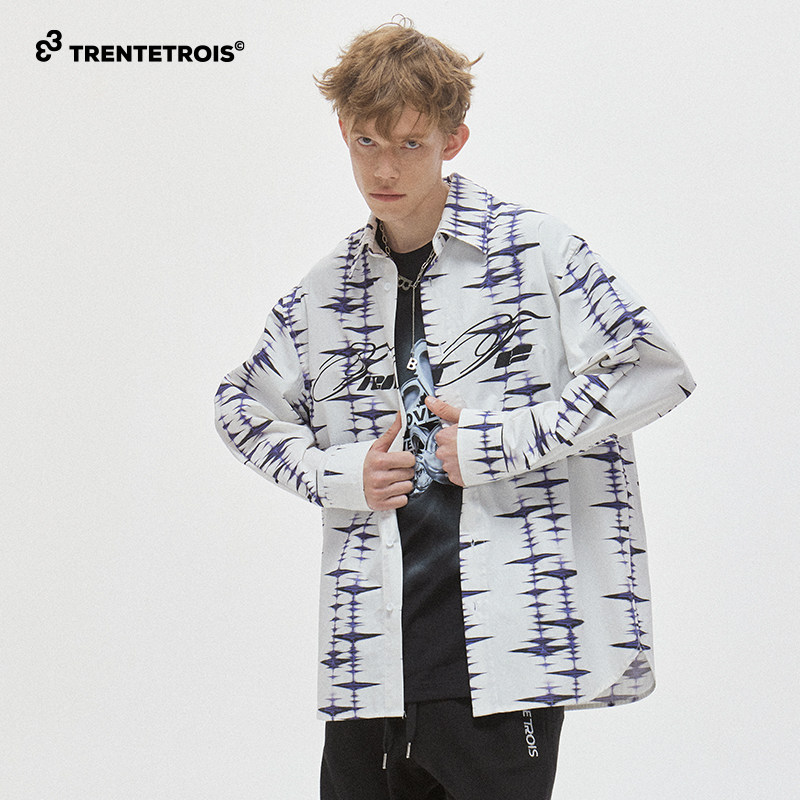 33TRENTETROIS潮牌休闲长袖衬衫潮流印花宽松舒适时尚衬衫
