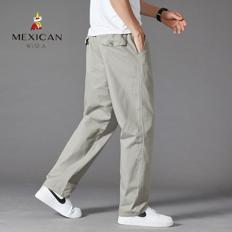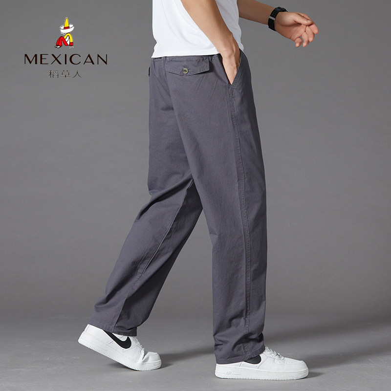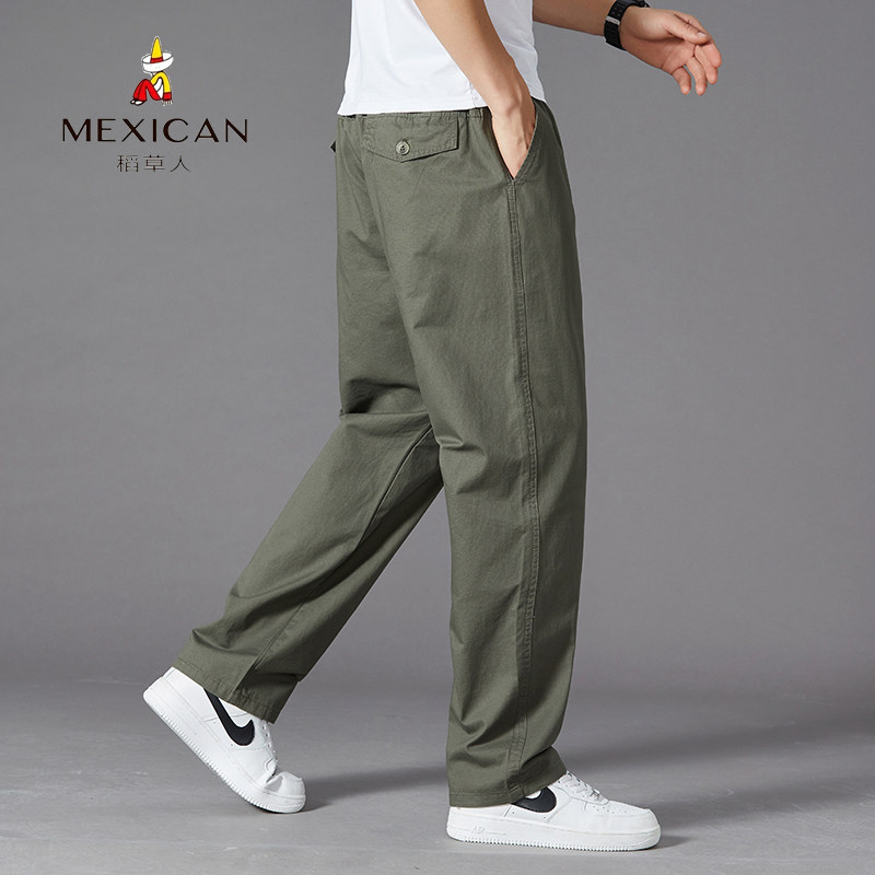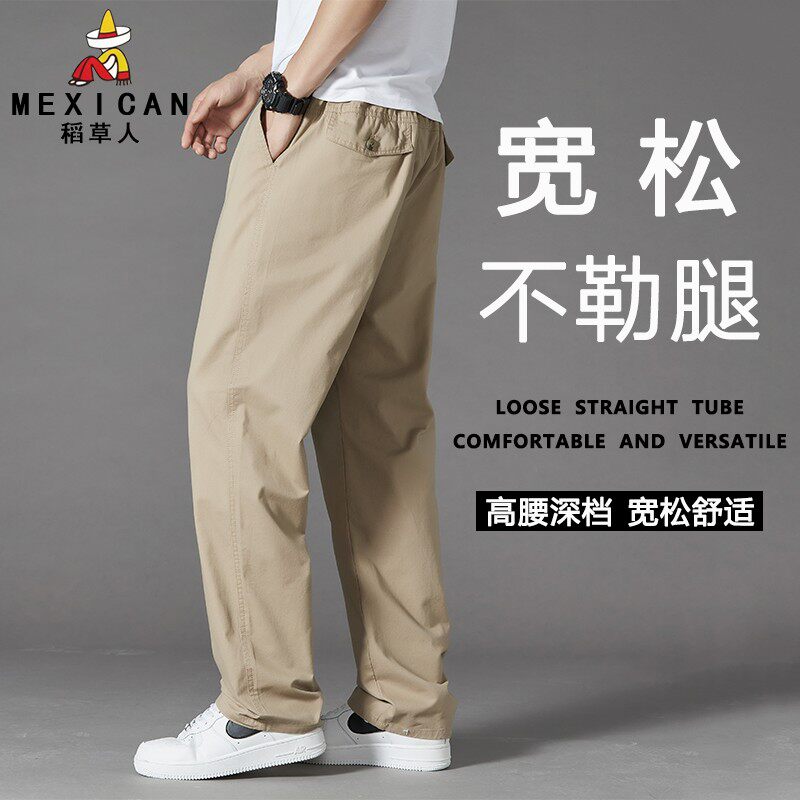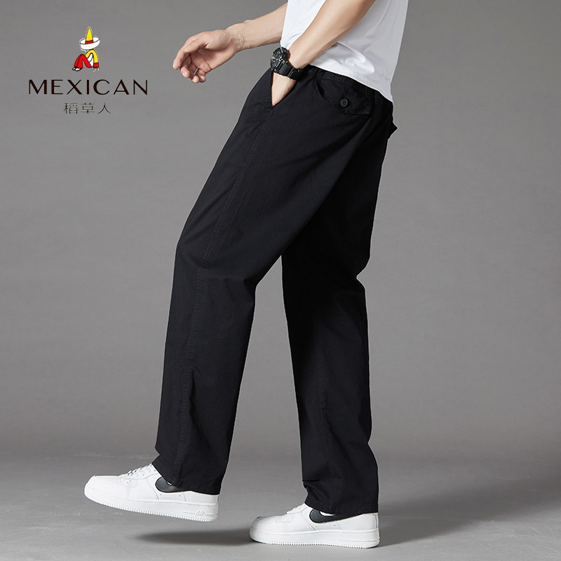 稻草人纯棉男士休闲裤宽松加肥大码直筒春季新款运动裤子工装长裤
