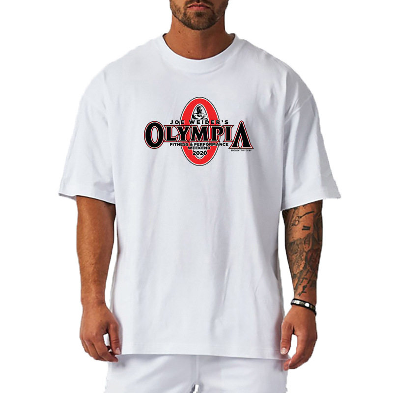 欧美纯棉短袖男奥赛健身衣加大码T恤落肩袖打底夏季宽松重磅240克