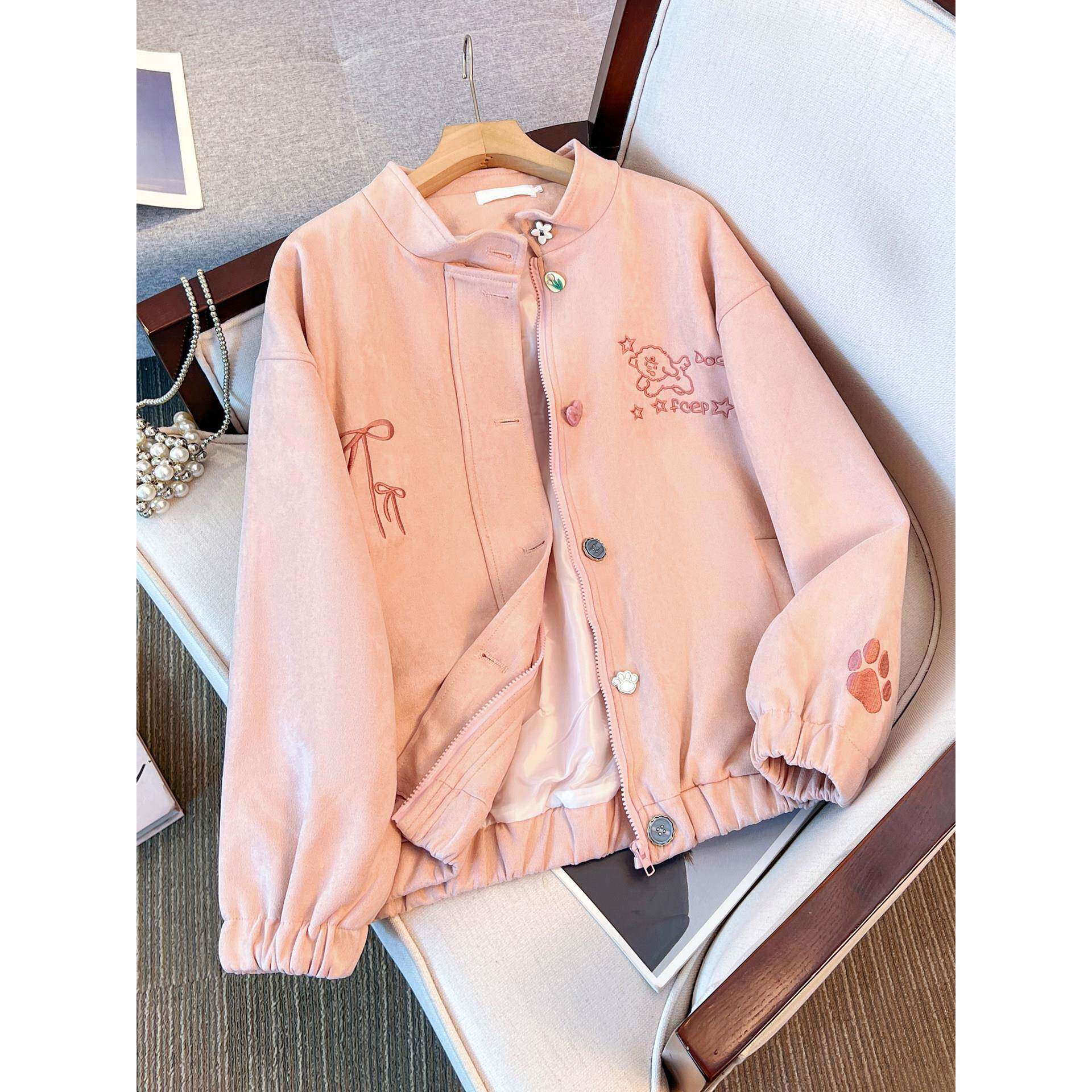 美式刺绣麂皮绒外套女春秋2025新款宽松慵懒风学生棒球服夹克上衣