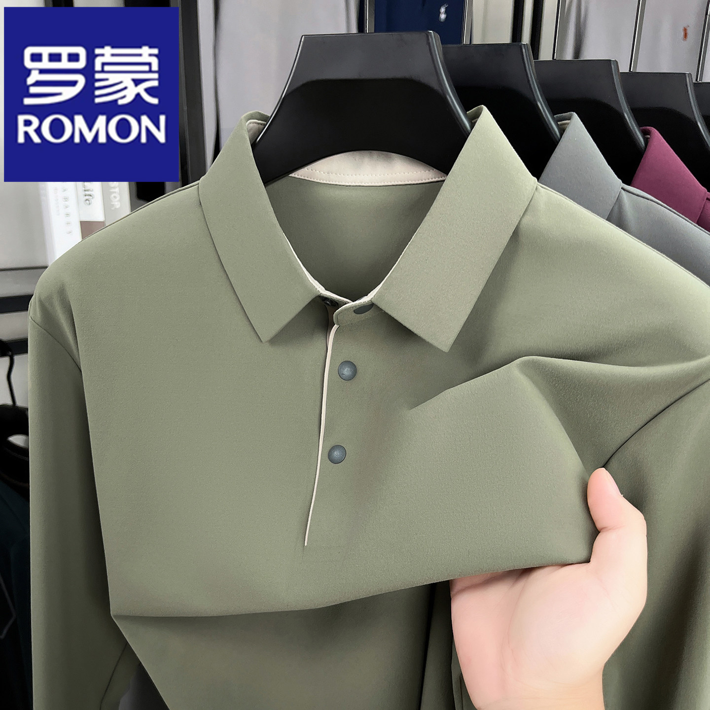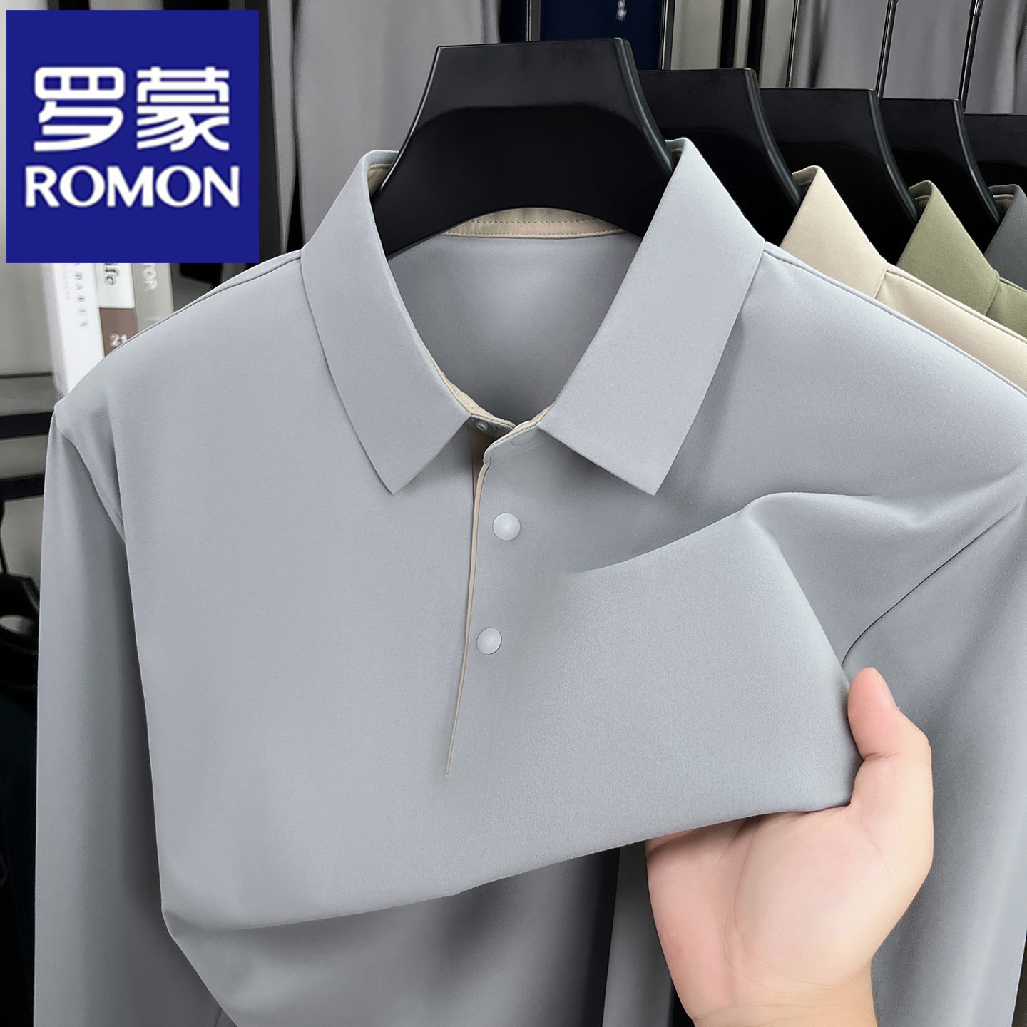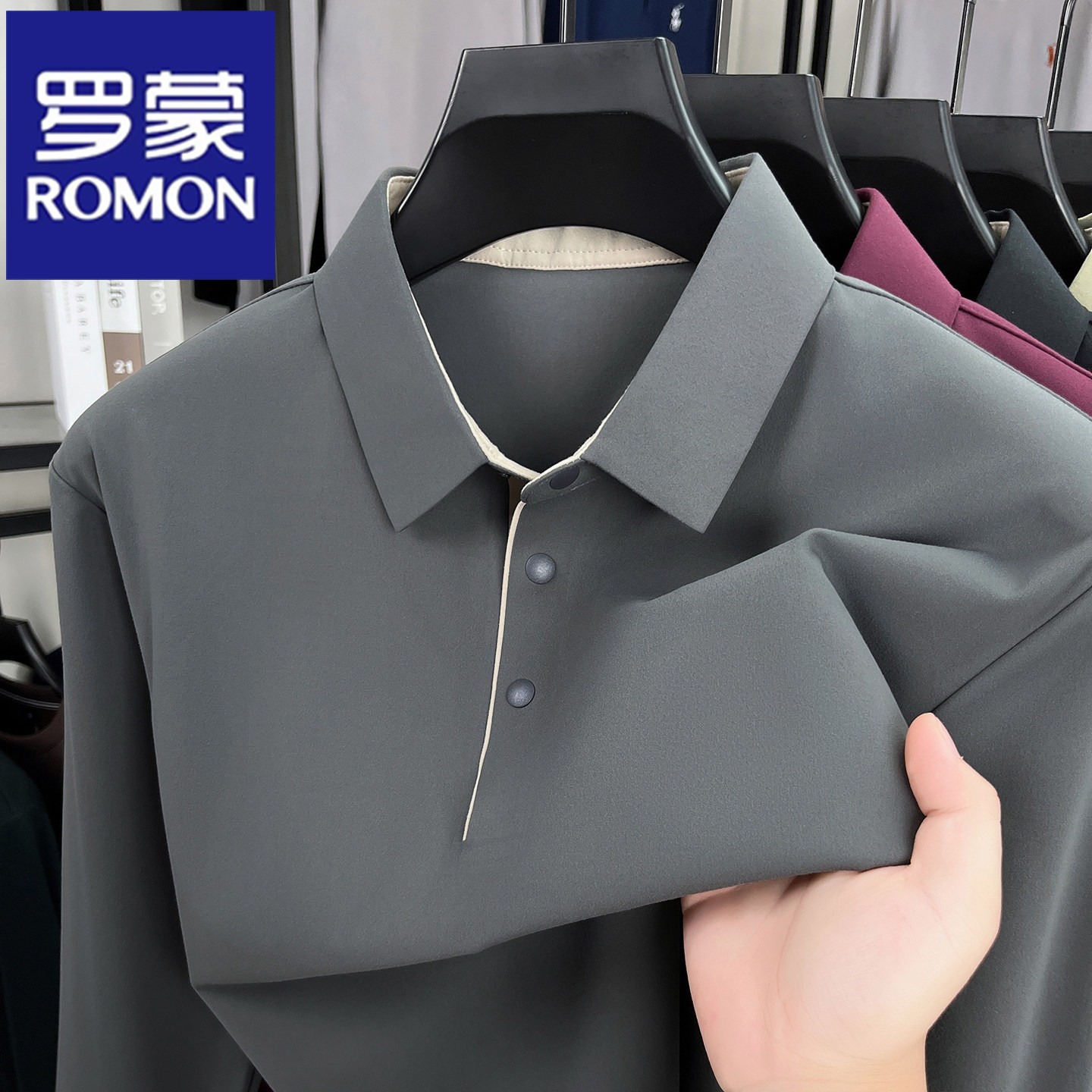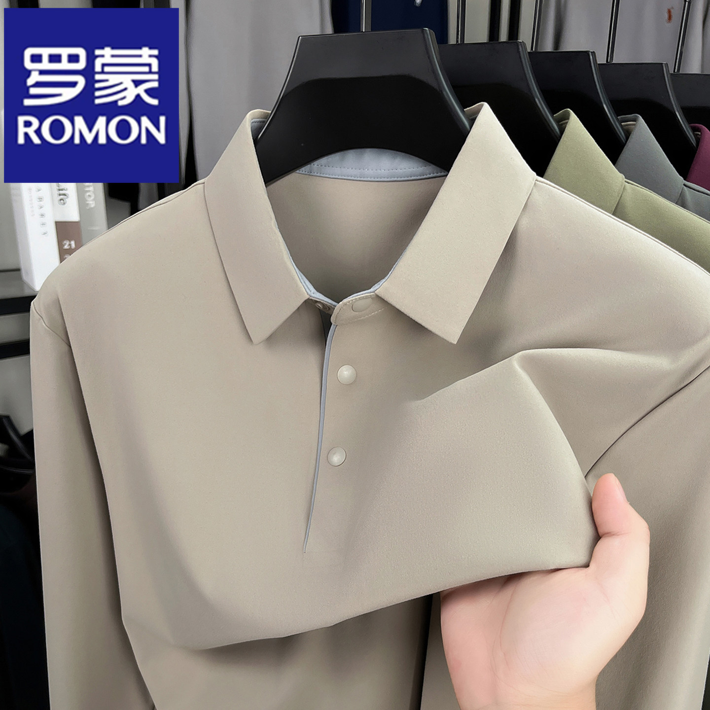 淘宝罗蒙正品2026新款男士长袖T恤翻领无痕上衣服高端商务休闲POLO衫